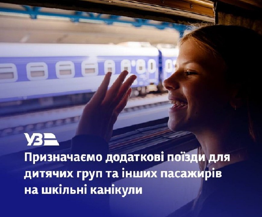Укрзалізниця продовжує забезпечувати подорожі для дитячих груп та інших пасажирів на шкільні канікули і призначає ще два додаткових поїзди в найзатребуваніших напрямках.
