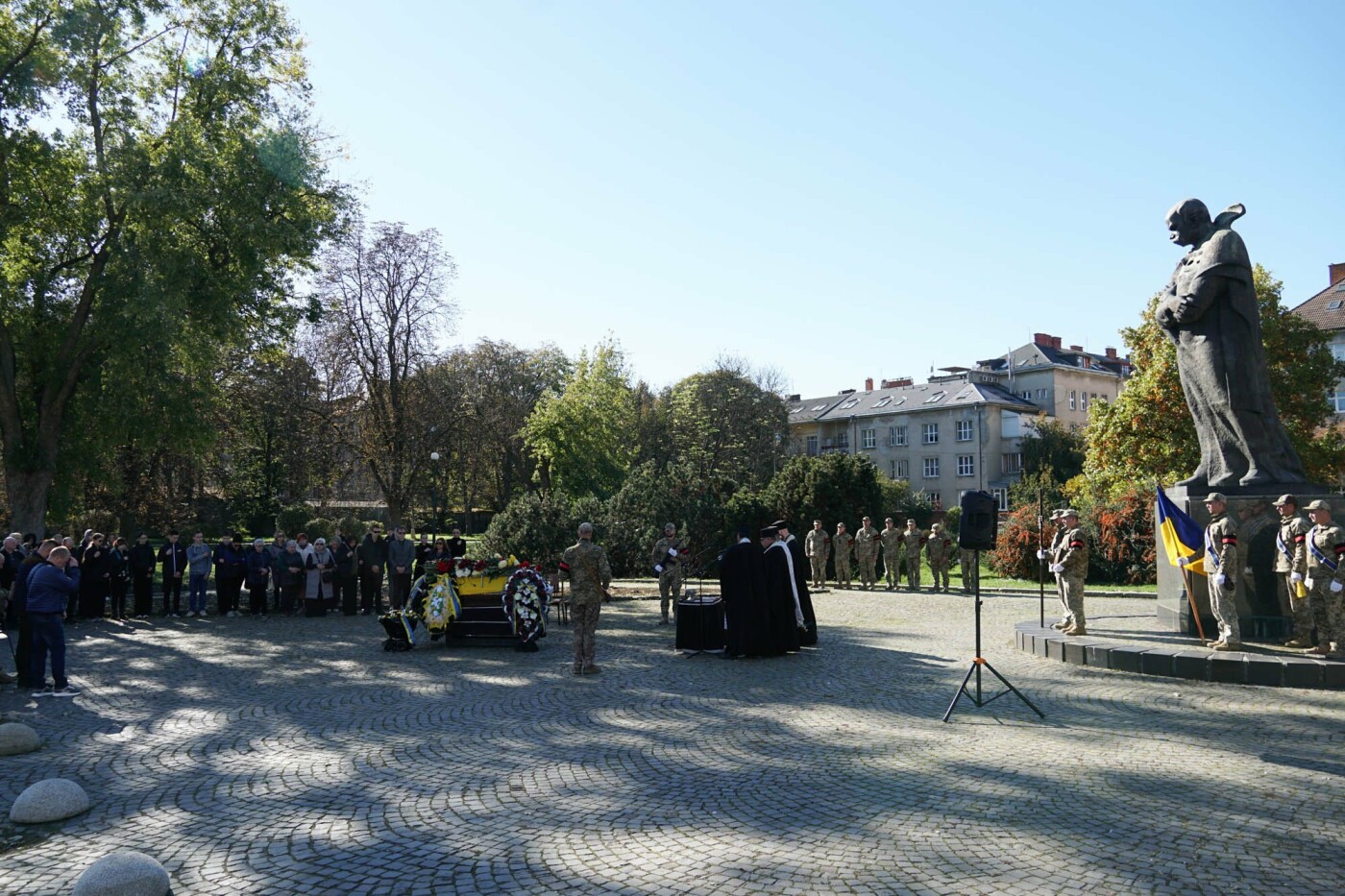 Чин похорону відбувся на площі Народній. Віддати шану захиснику прийшли рідні та близькі, міський голова Богдан Андріїв, військові, містяни.