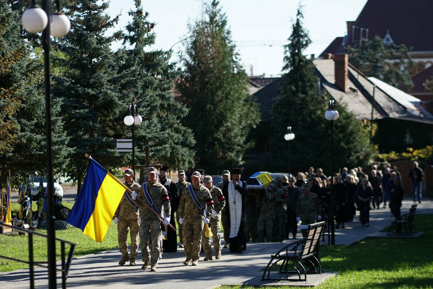 Після заупокійної літургії жалобна хода пройшла до Пагорба Слави, де Олексія Тімірязєва поховали із військовими почестями.