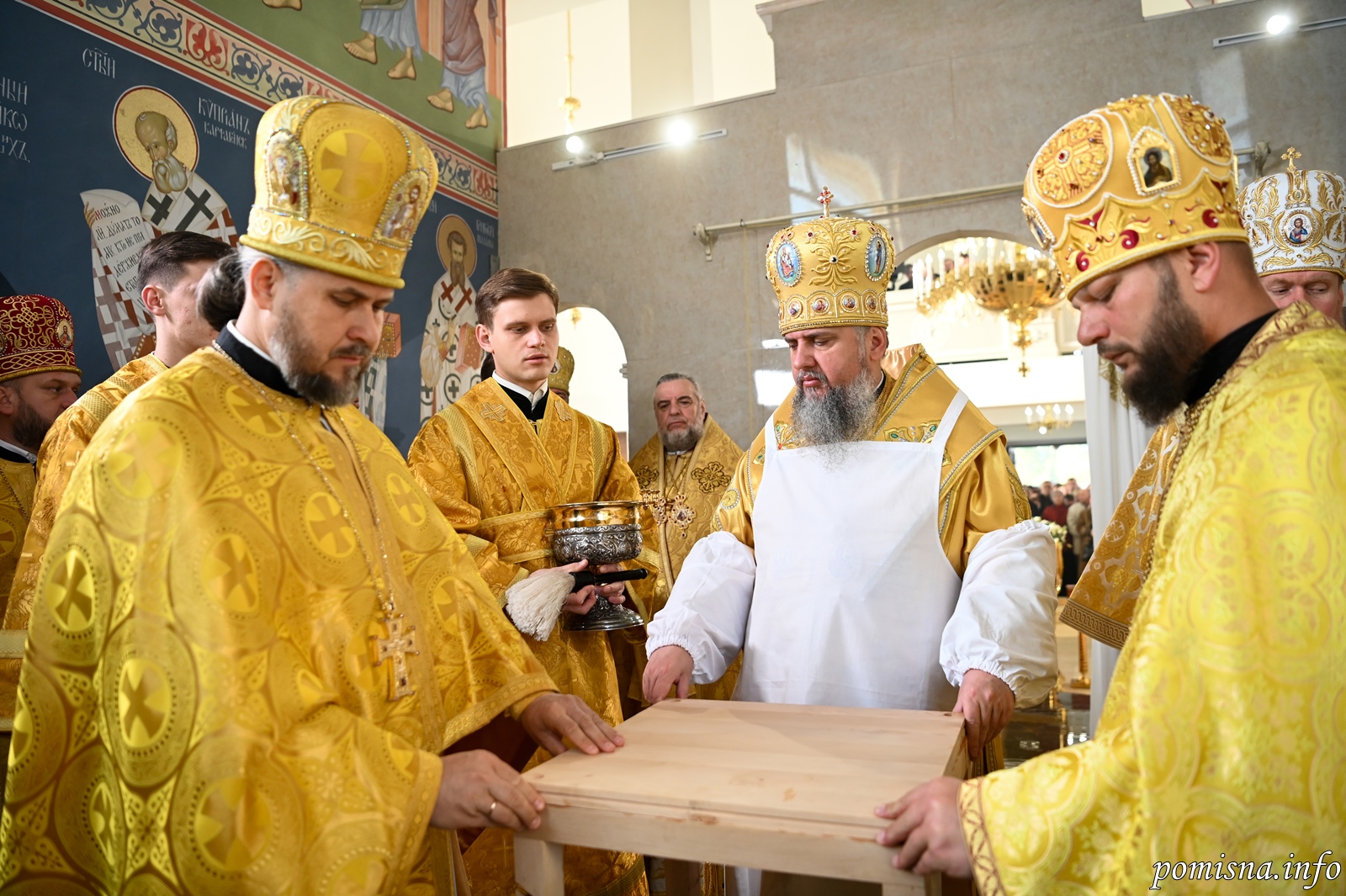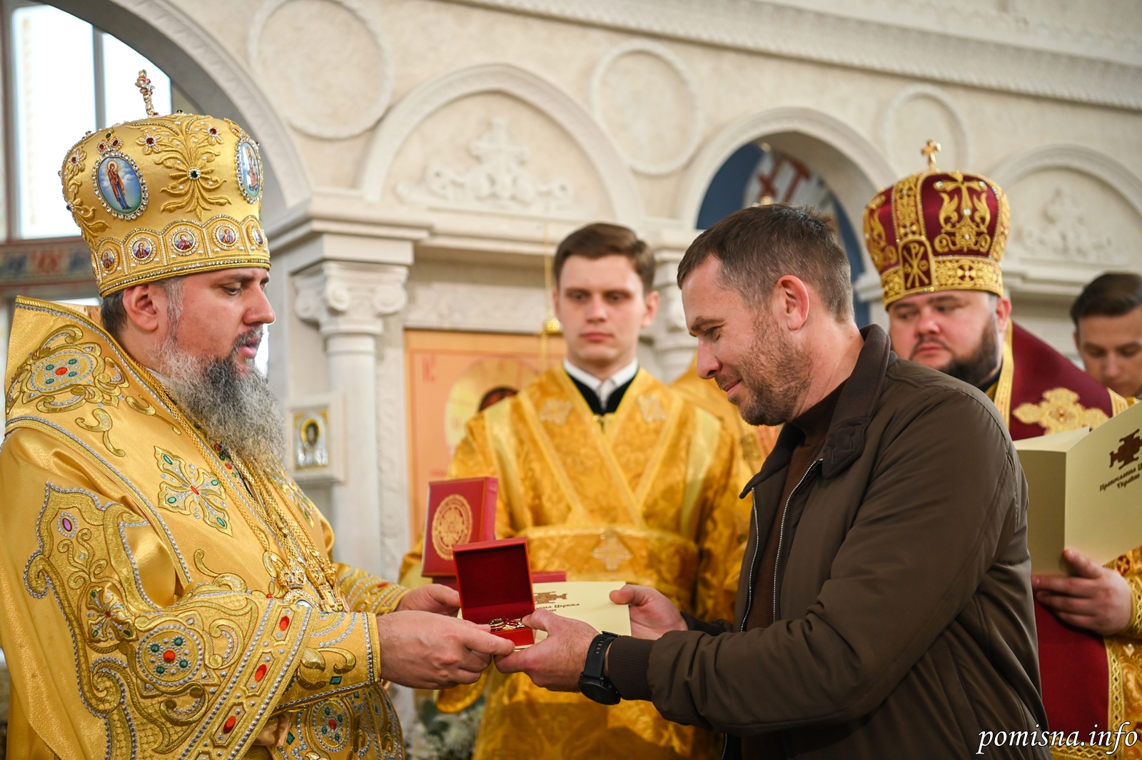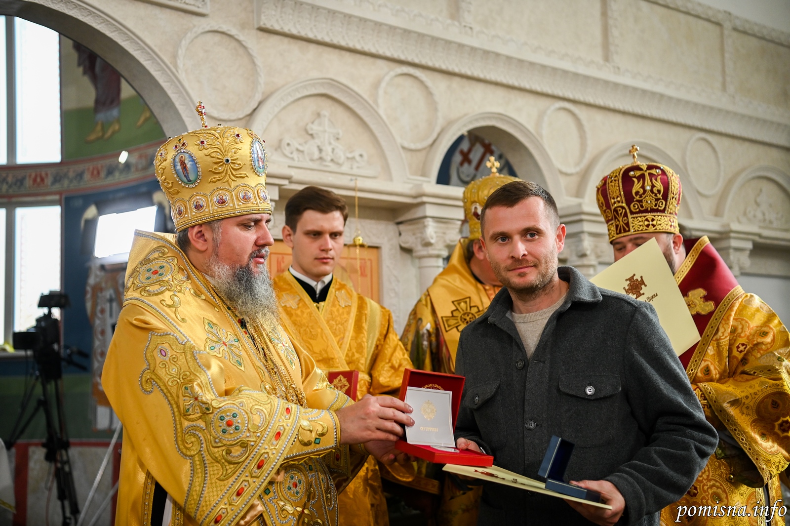 Наприкінці Божественної літургії предстоятель подарував для храму богослужбове Євангеліє та хрест, а також відзначив настоятеля протоієрея Ігора Орденом святителя і чудотворця Миколая, і високими церковними нагородами – меценатів та благодійників.