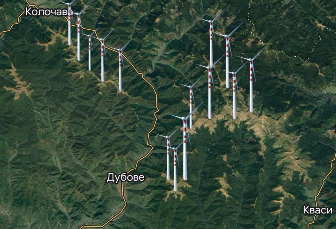 Наприкінці жовтня Дубівська селищна рада також повідомила, що замовила містобудівну документацію під чотири ВЕС на загальній площі 517 га і напередодні оприлюднила схему розміщення 22-ох вітрових електростанцій на полонині Апецька.