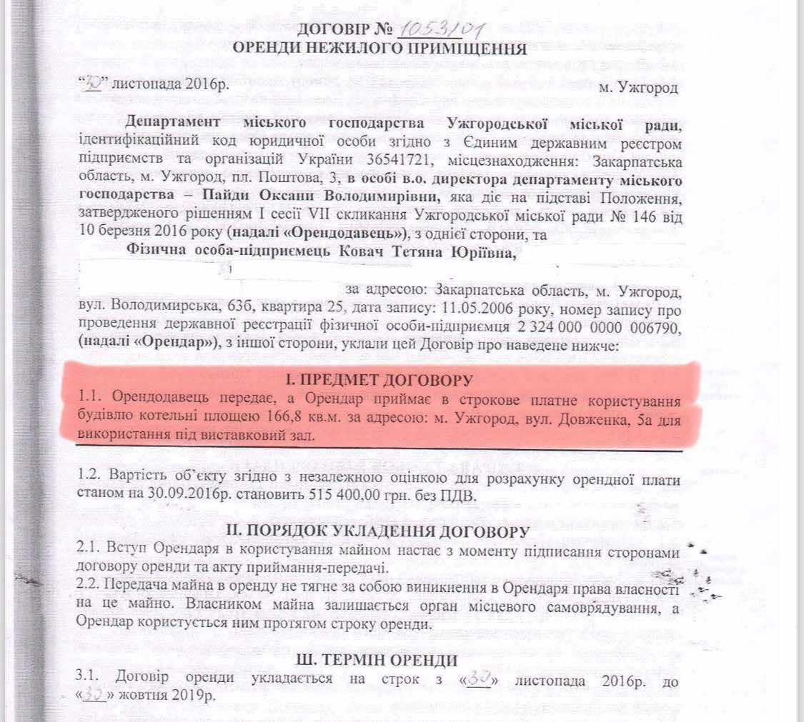 Котельню Тетяна Ковач отримала у оренду в 2016 році. За договором жінка зобовʼязалася відкрити там виставковий зал. Але весь цей час там була лише «виставка сміття». Тобто, договір оренди не виконувався, що мало бути підставою для його розірвання, як це вказано у самому документі. Однак, замість цього у 2019 році сесія міської ради дозволила викуп котельні «піджаку» свого голови Андріїва.