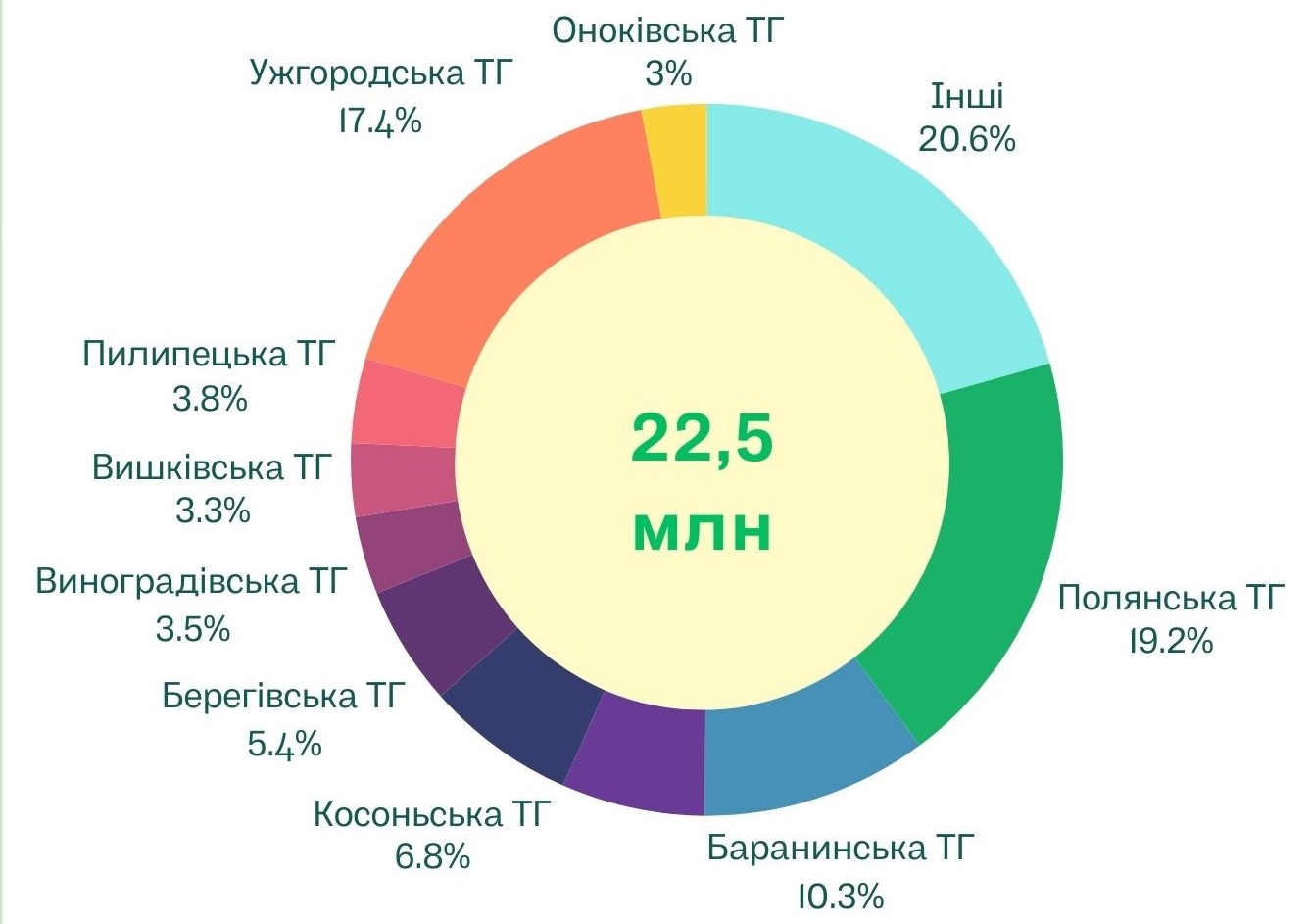 м. Берегове – 1 222,6 тис. грн;