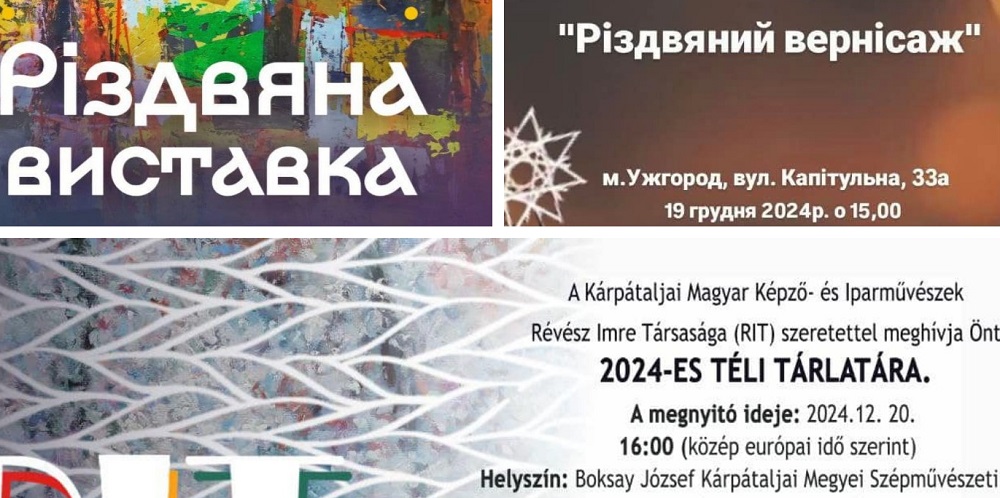 – о 15:00 в галереї «Ужгород» відбудеться відкриття традиційної «Різдвяної виставки» робіт митців Закарпатської обласної організації Національної спілки художників України;