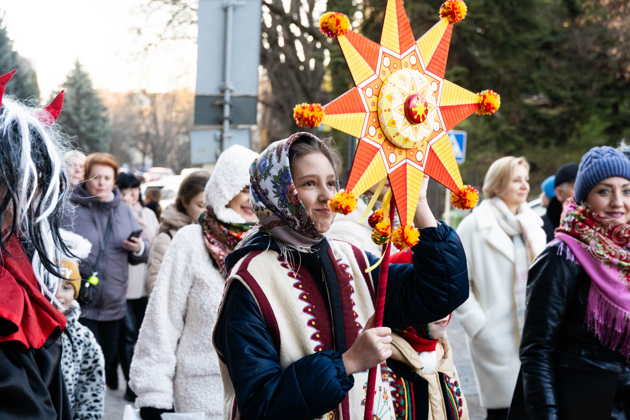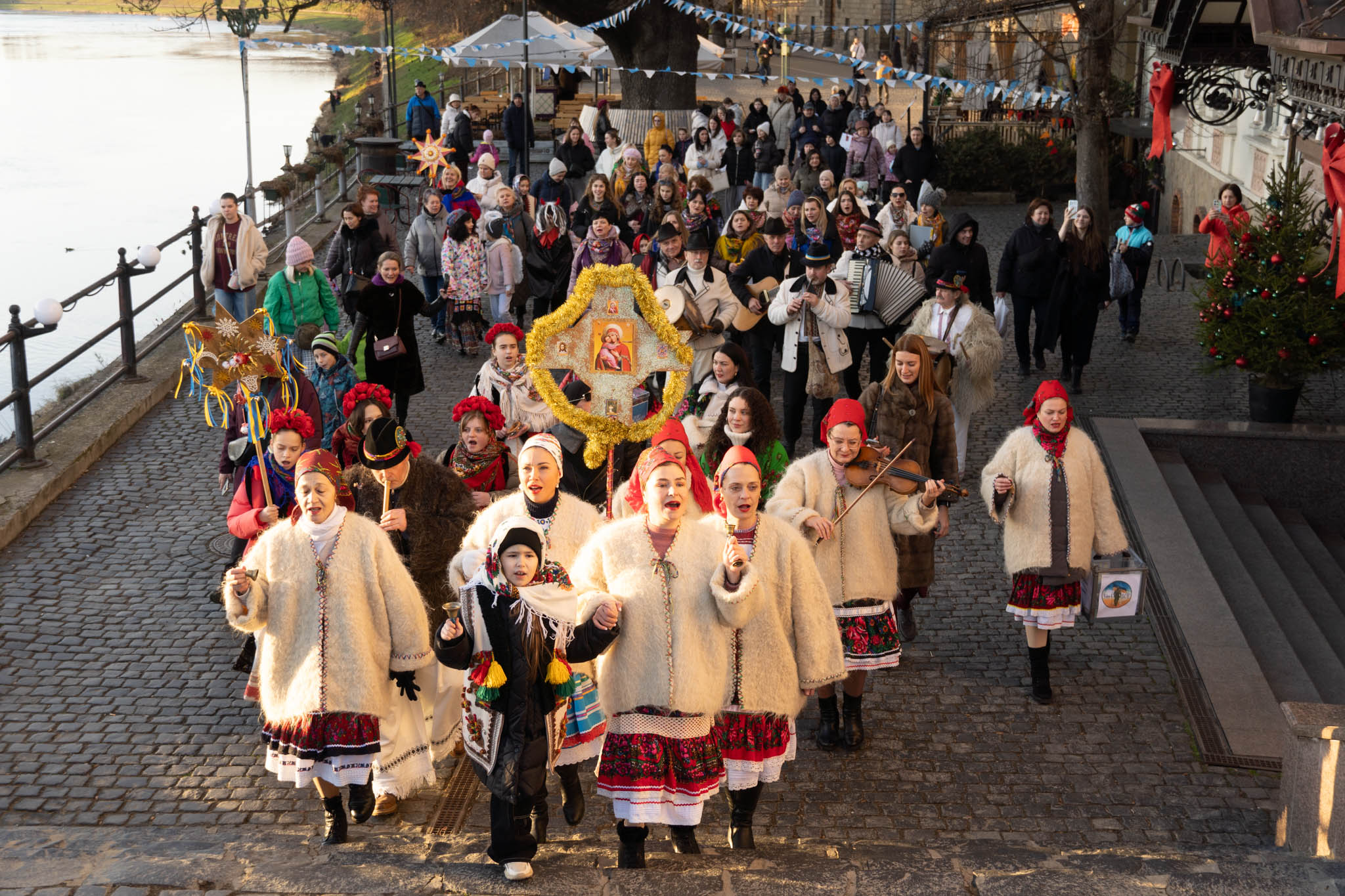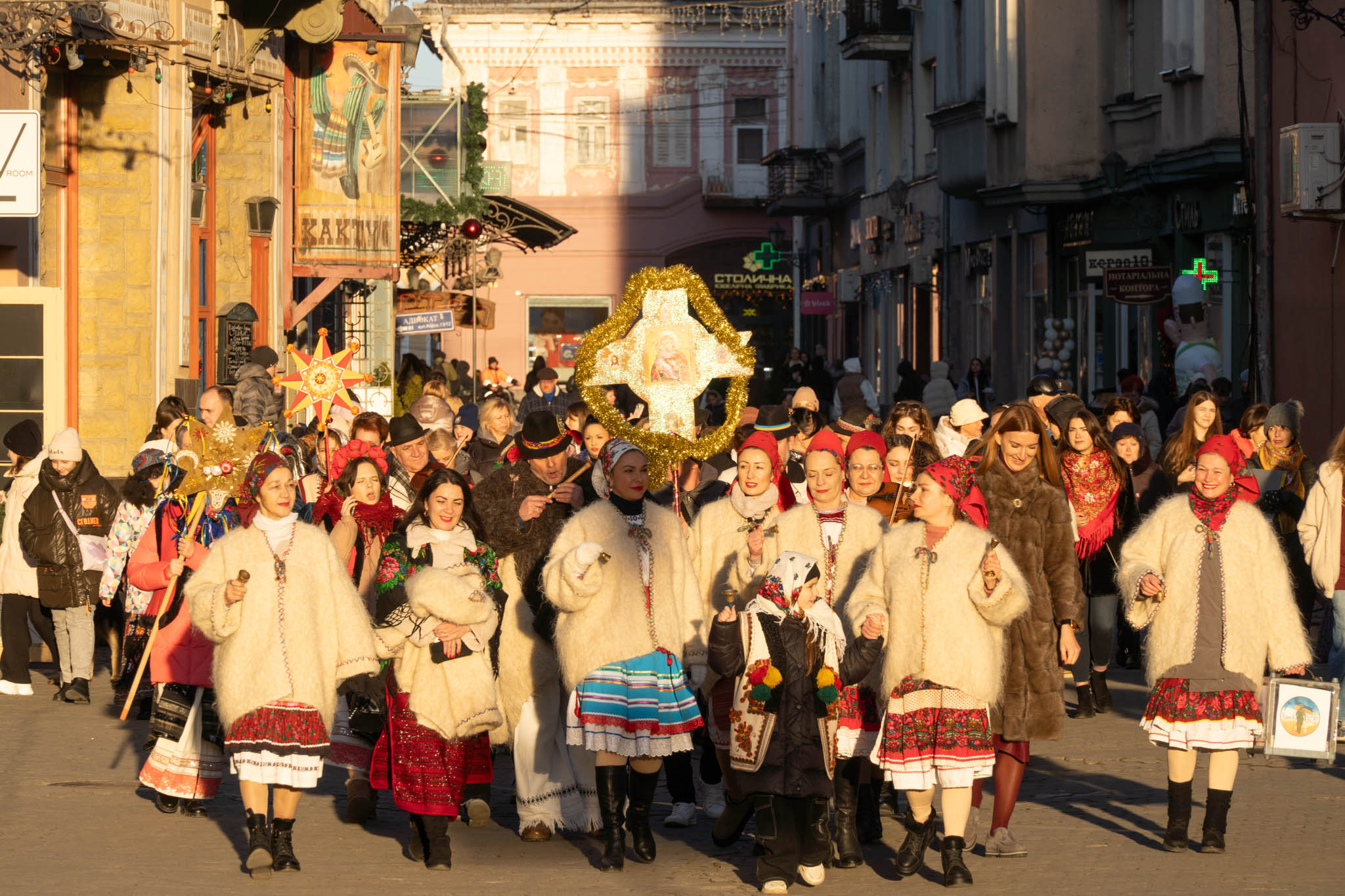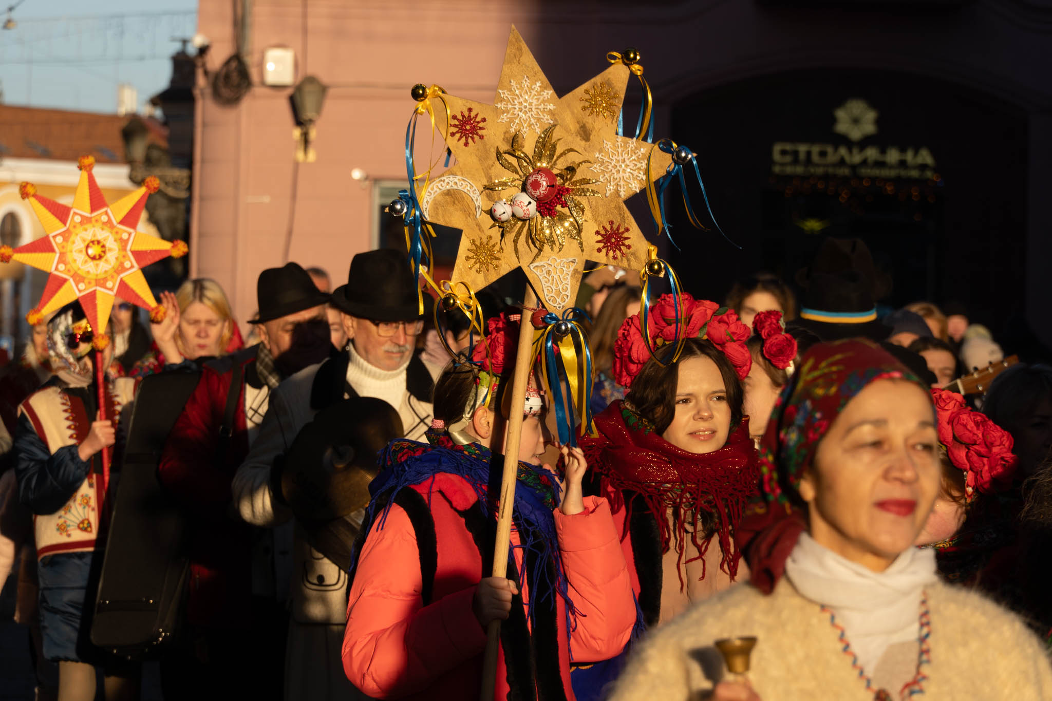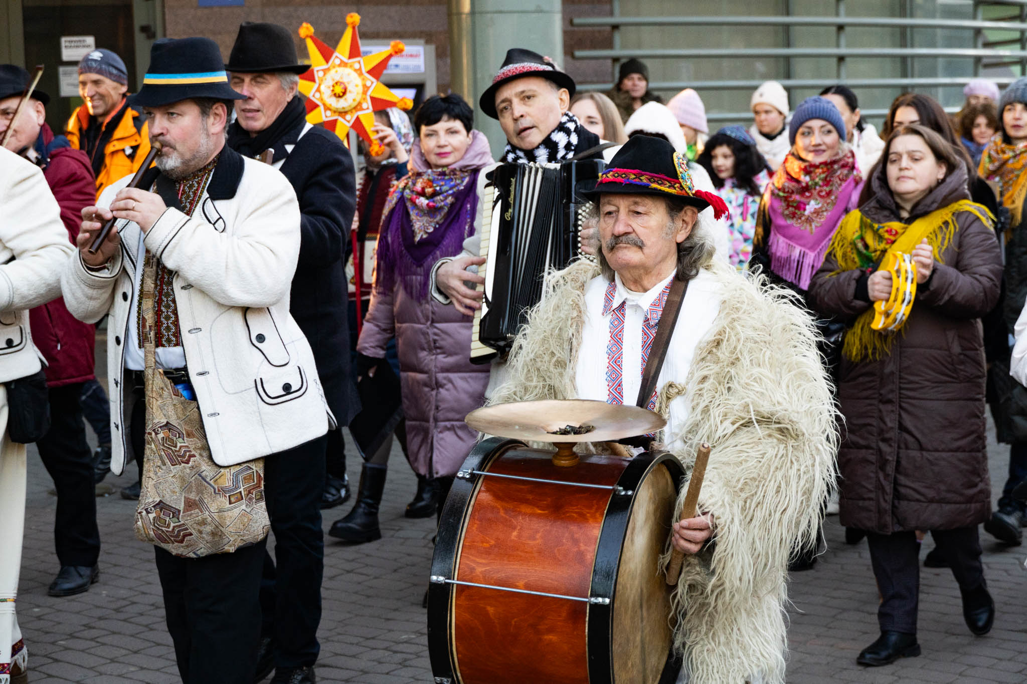 Народні колективи та солісти зібралися на площі Поштовій, звідки й стартували з колядою. Кожен охочий міг задонатити на підтримку Збройних Сил України.