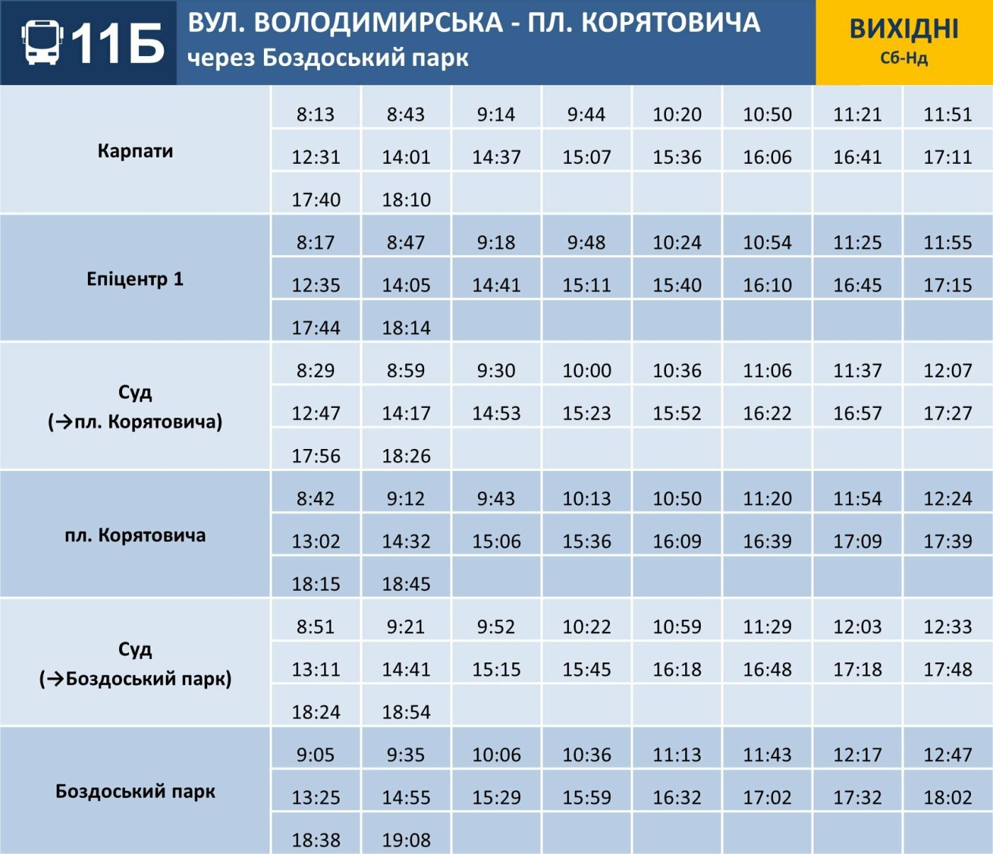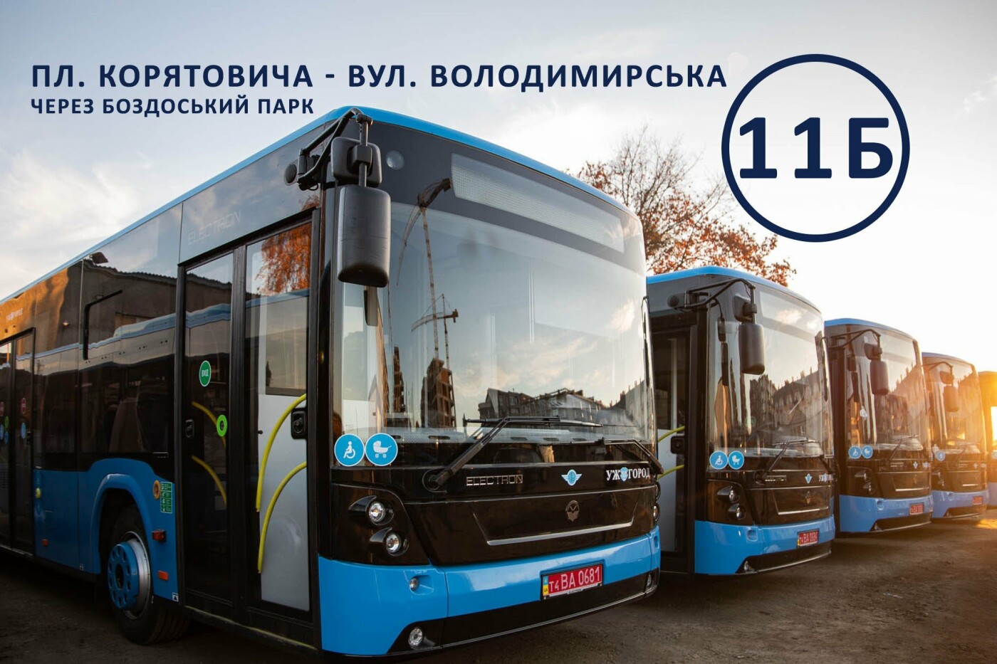 Як у п’ятницю, 21 лютого, повідомили в Ужгородській міській раді, три автобуси «Електрон» запустять на маршруті № 11Б від вулиці Володимирської до площі Корятовича через Боздоський парк.