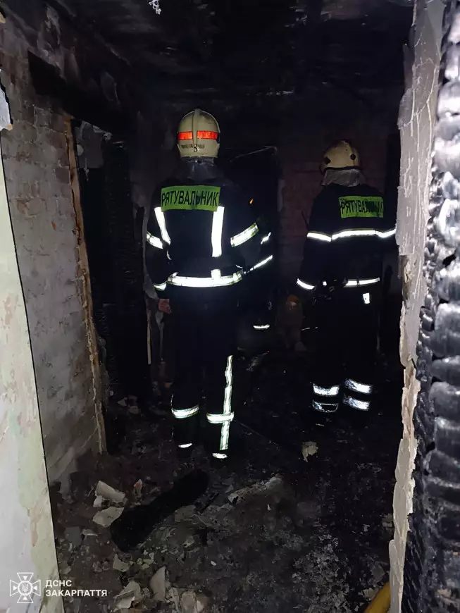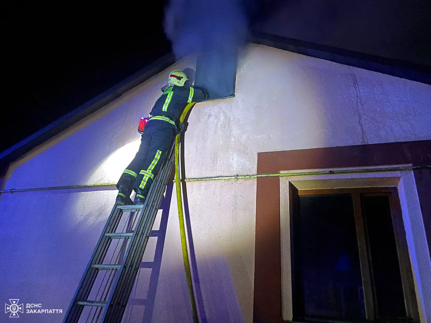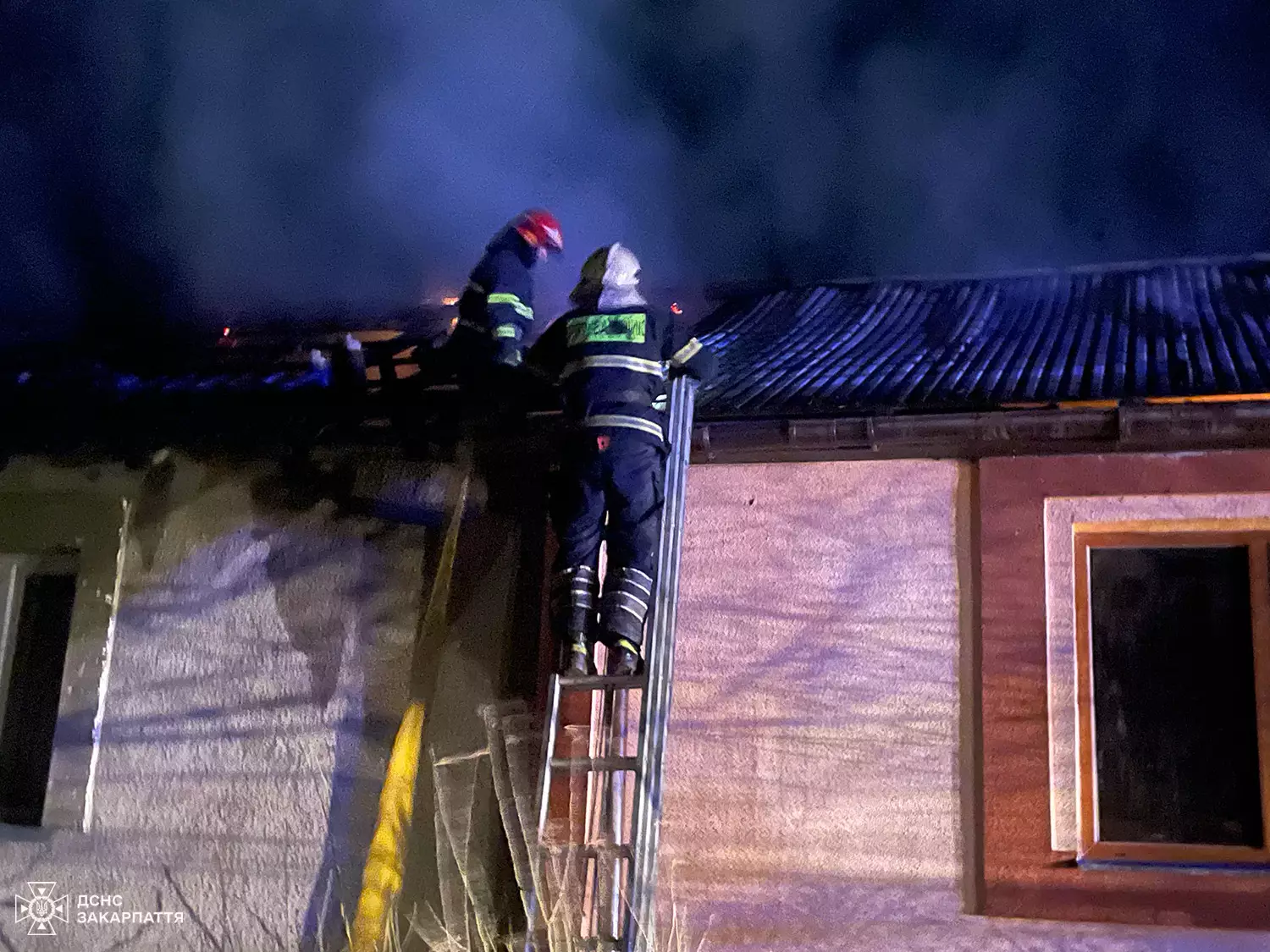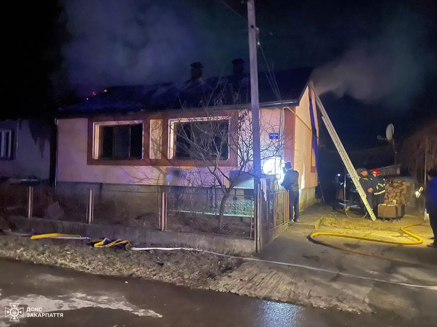 Вогнеборці 8-ї державної пожежно-рятувальної частини селища Великий Березний першочергово стали на захист житлових кімнат та одночасно з цим подали воду у осередок пожежі.