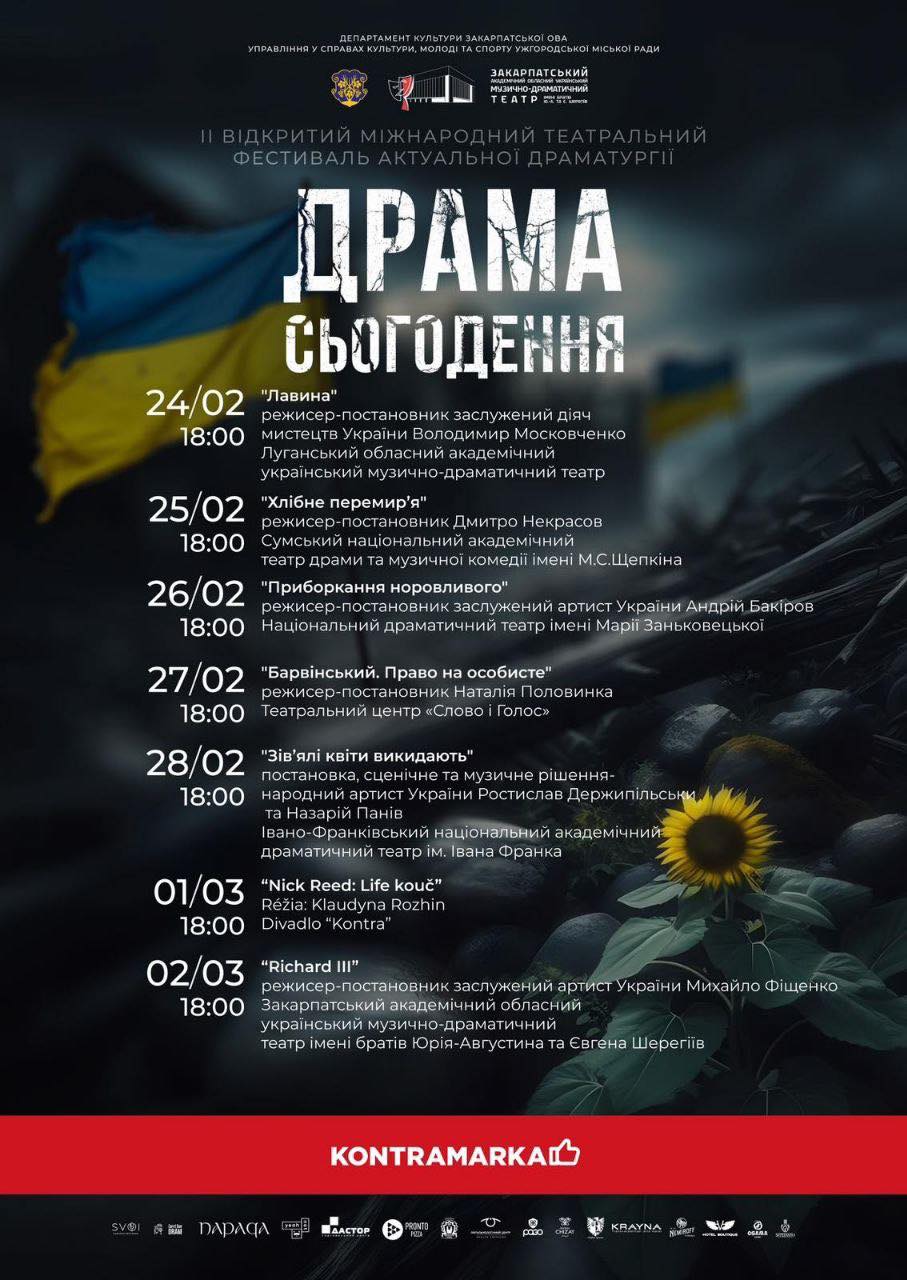 У наступні дні на шанувальників театрального мистецтва чекають не менш яскраві враження від постановок за творами різних жанрів, народів, епох – від Шекспіра до Жадана – в яких так чи інакше звучить тема війни, драма сьогодення.