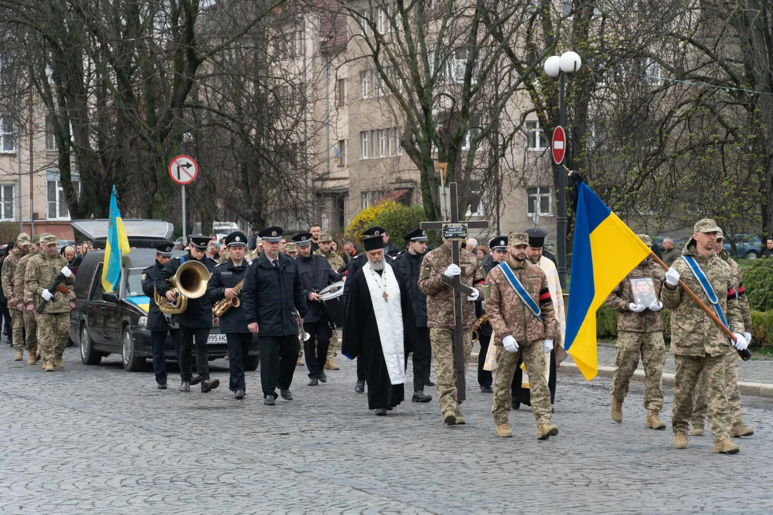 Після заупокійної літургії жалобна хода пройшла центральними вулицями міста до Пагорба Слави, де Сергія Лазорика поховали з військовими почестями, повідомляє Ужгородська міська рада.
