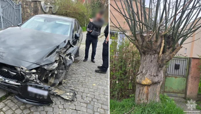 На службовий планшет патрульних надійшов виклик про порушення правил дорожнього руху на вулиці Масарика. Прибувши на місце події, правоохоронці виявили автомобіль Mazda, що отримав пошкодження передньої частини після наїзду на дерево.