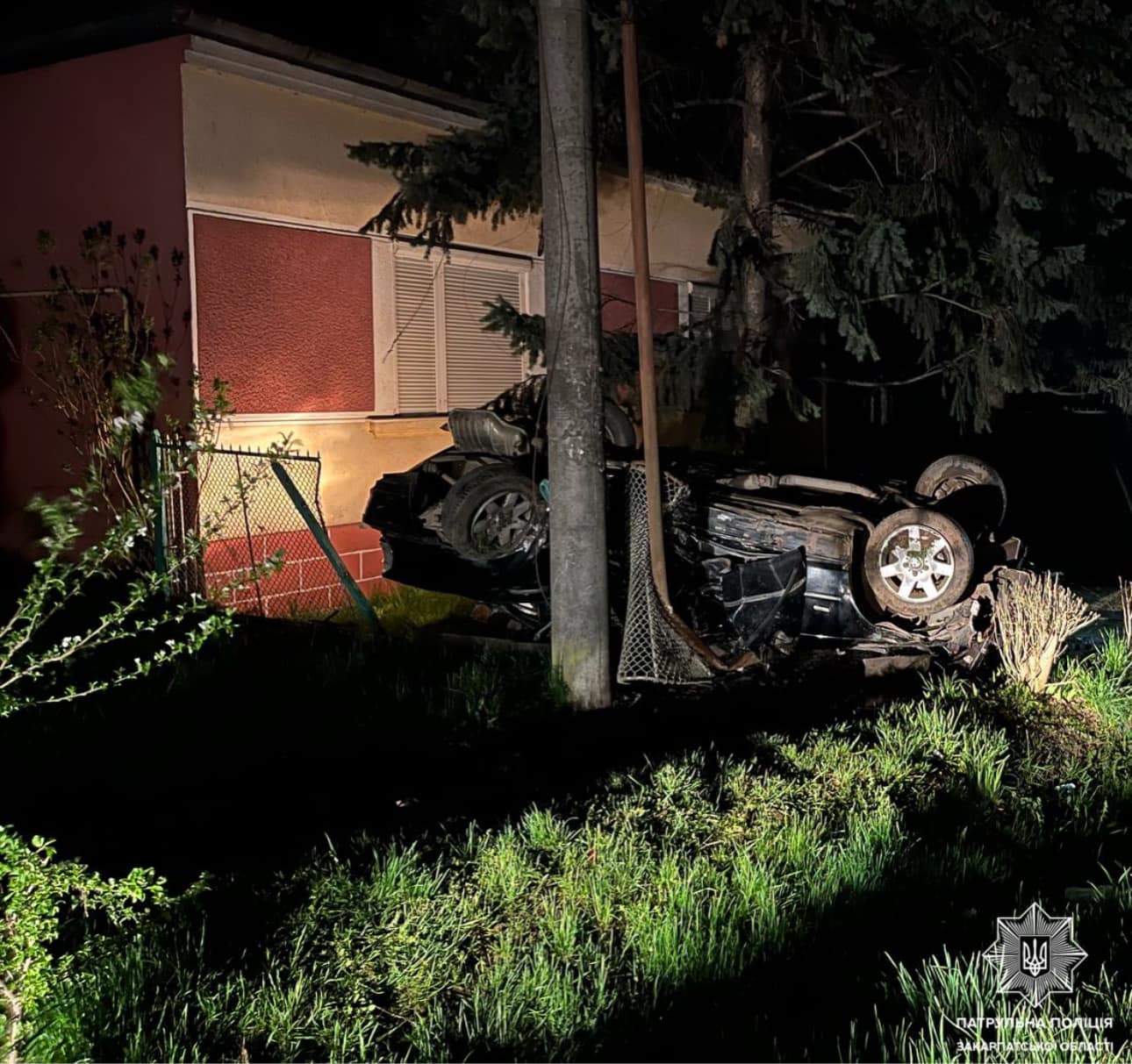 Прибувши на місце події, патрульні з’ясували, що водій на автомобілі BMW влетів у паркан будинку, після чого авто перекинулося на дах.