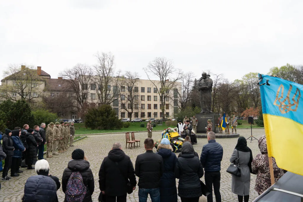 Прощалися із захисником на площі Народній. Віддати шану полеглому воїну прийшли рідні, друзі, побратими, в.о. міського голови, заступник міського голови Вадим Борець, ужгородці й військовослужбовці.