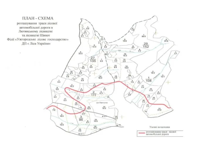 План-схема розташування траси лісової автомобільної дороги. Фото: сайт WWF-Україна