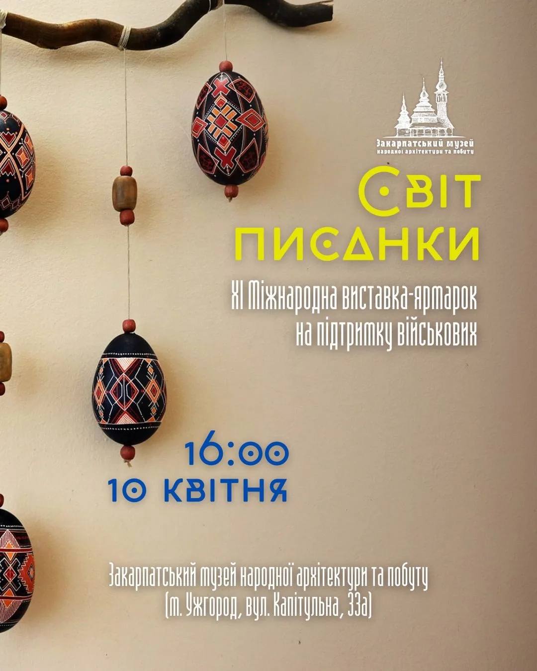 Близько 700 писанок, виконаних у найрізноманітніших техніках, можна побачити на виставці-ярмарку «Світ писанки», яку традиційно (уже водинадцяте!) до Великодня організовують у Закарпатському музеї народної архітектури та побуту.
