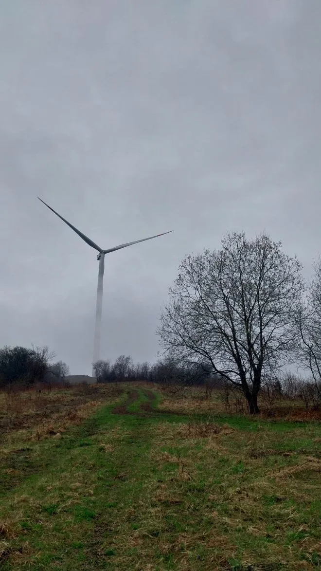 «Це зараз ще не дуже вітряно, при доброму вітрі люди в селі за 2 кілометри його чують. А взимку, коли морози міцні, на лопатях намерзає крига і зупиняє їхній рух – спрацьовує автоматика», – каже екологиня Оксана Станкевич-Волосянчук, з якою йдемо поруч.