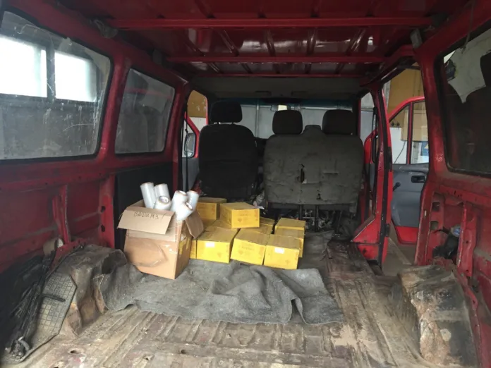 У свою чергу спільник, запакувавши роботи у чорний поліетилен, передав їх водієві Ford Transit. Останній сховав картини під ковроліновим покриттям та ящиками плитки і намагався вивезти до Словаччини через пункт пропуску «Ужгород», де його затримали працівники СБУ.