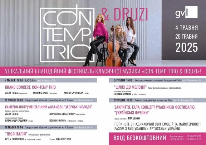 Упродовж всього травня в різних закладах міста проходитимуть концерти гурту Con Temp Trio в рамках їхнього Благодійного фестивалю класичної музики.