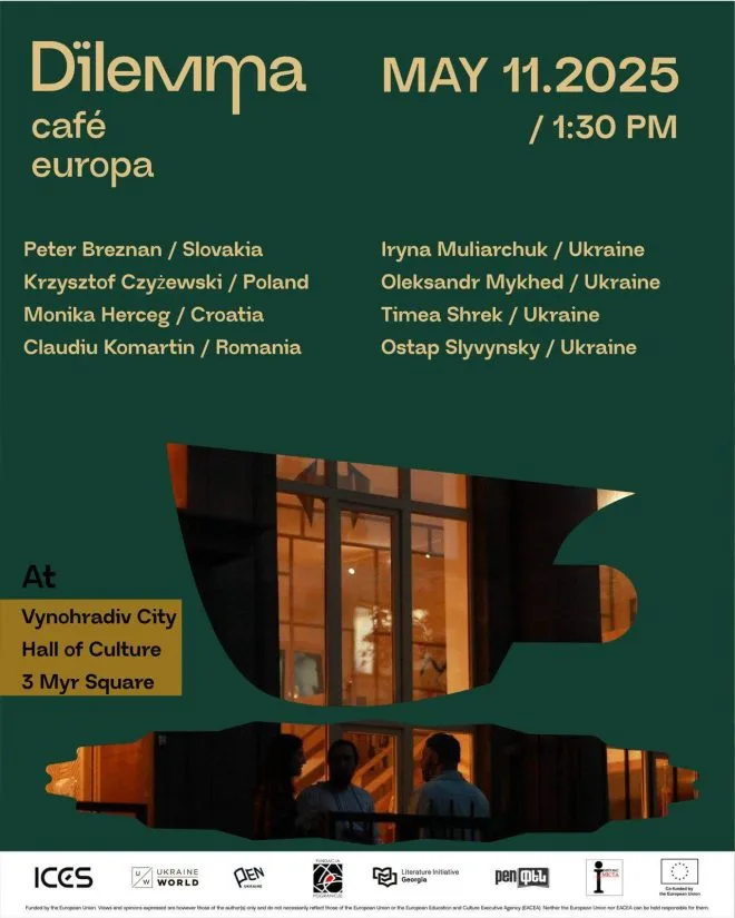 У Виноградові в неділю, 11 травня відбудеться міжнародний культурний форум Café Europa. Захід відбудеться в рамках Міжнародної мобільної академії Дилема Dilemma Academy, яка відбуватиметься 8-12 травня на Закарпатті. Організатором є ICES – The Institute for Central European Strategy у співпраці з партнерами з Польщі, Вірменії, Грузії та за підтримки Європейської комісії. У рамках проєкту в Україні зберуться 30 провідних інтелектуалів та інтелектуалок, щоб поговорити про майбутнє Європи та роль культури в протистоянні злу.