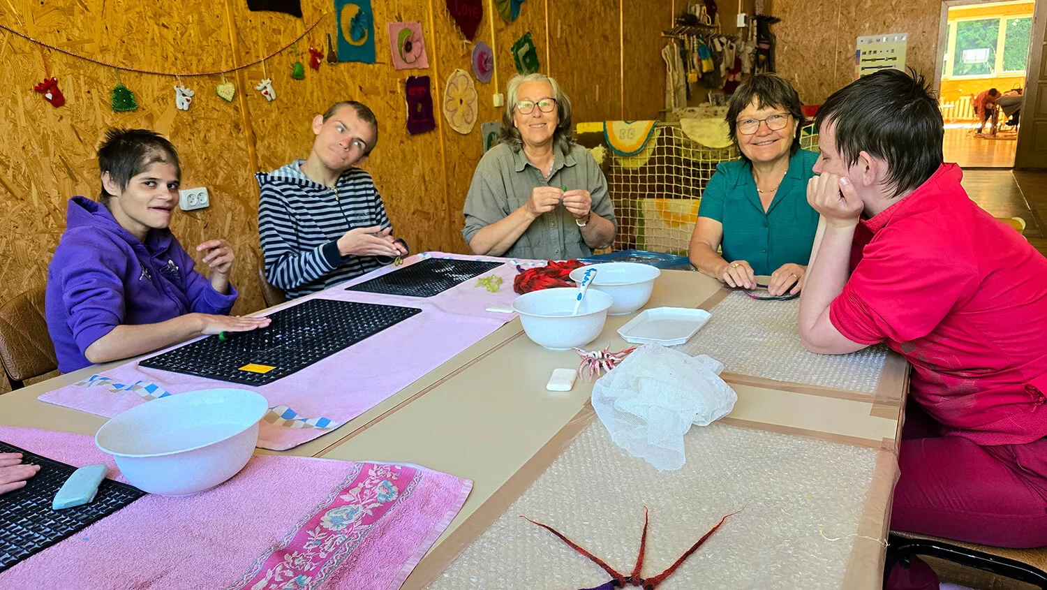 Катерина Ірха розповіла, що команда працювала спільно і в фільцювальній майстерні: там з інструкторкою з трудового навчання Вікторією Крічфаловшій працювала її швейцарська колега Марліз Кауфманн, яка свого часу брала активну участь у розбудові сфери зайнятості підопічних Вільшанського дитячого будинку-інтернату. Асистували їм директорка БО «БФ «КМДЗ» Наталія Кабацій та координаторка проєктів Комітету Леся Левко.