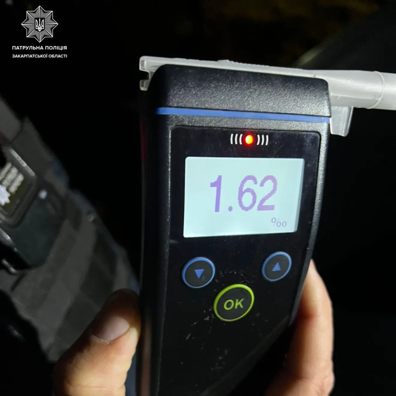 Подія трапилась у понеділок, 19 травня, близько 22-ї години. Під час несення служби в Мукачеві патрульні зупинили авто Peugeot для перевірки документів. Під час спілкування з водієм інспектори помітили ознаки алкогольного сп1яніння. Огляд провели на місці події за допомогою приладу Драгера. Результат — 1.62 проміле, а це у понад 8 разів перевищує допустиму норму алкоголю в крові.