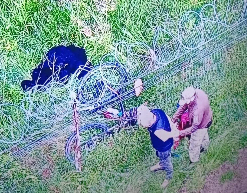 Невідомого зафіксували за допомогою камери відеоспостереження. На відкритій ділянці він пересувався на велосипеді, а коли долав чагарники, то спішувався.