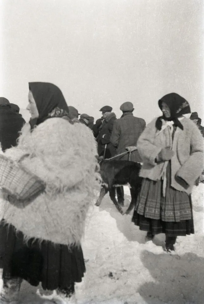 Група людей на ярмарку худоби. Ужанська Верховина, 1930 ті роки. Фото Андрія Коцки.