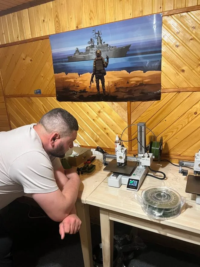 Відтак самостійно придбав 3D-принтер і взявся виготовляти 3D-комплектуючі. Каже: запити надходять різні, моделювання надсилають побратими. Останній запит, що надійшов – на виготовлення 200 комплектів для дронів.