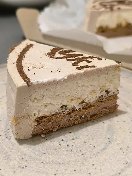— Між двома медовими коржами — дуже ніжний крем з молочного шоколаду, поверх коржів — карамель. Над карамеллю карамелізовані яблука, але їх небагато, вони тільки надають такої фруктової нотки всій композиції. І вже далі — великий пухкий шар “Маскарпоне”, — каже вона.