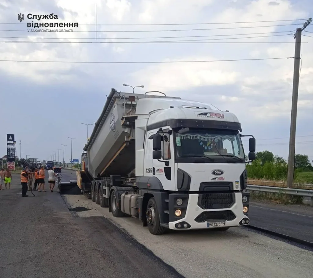 Площа вже відремонтованої ділянки складає 520 м2. Пошкоджене покриття ліквідовується наразі по правій стороні ділянки М-06 Київ – Чоп км 830+300 – 830+400. Ремонтні роботи виконуються по всій протяжності.