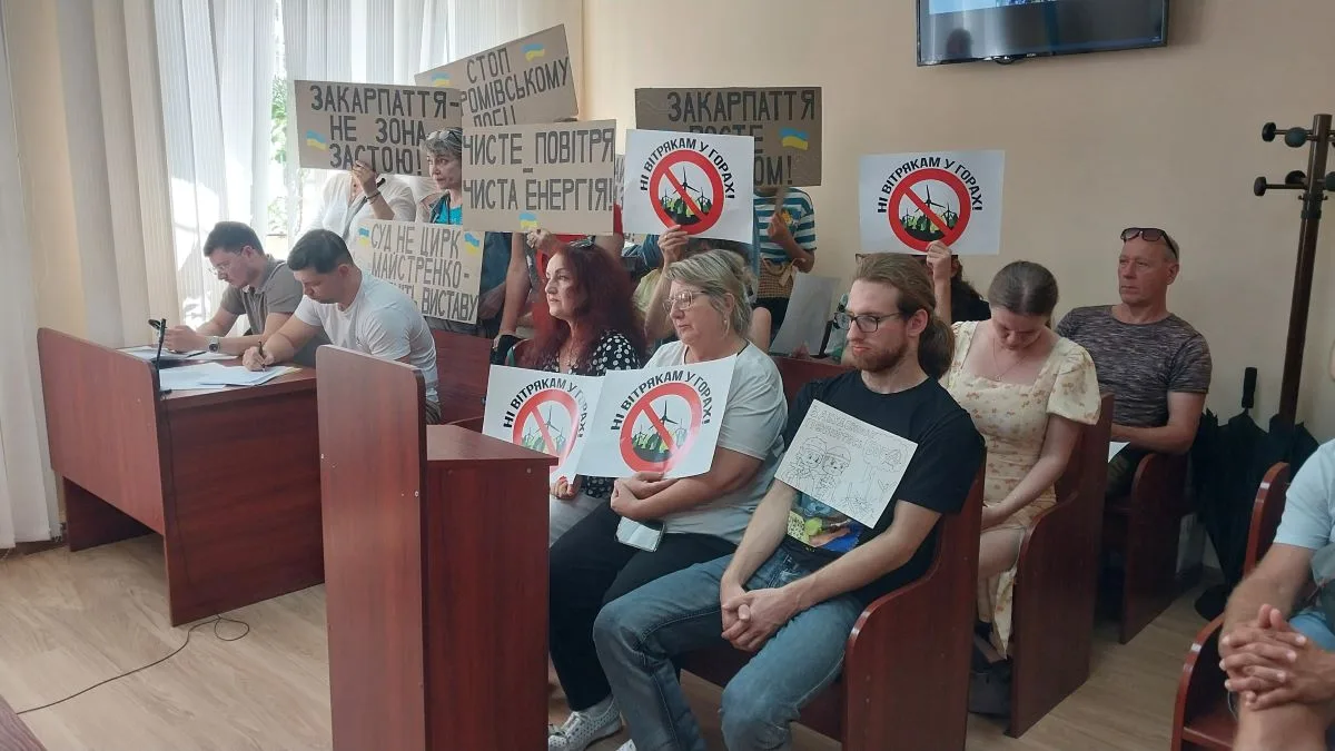 У засідання нині з’явилися представники обох сторін, а також громадський актив, що протестує проти зведення вітряків на Руній, та прихильники цієї ідеї.