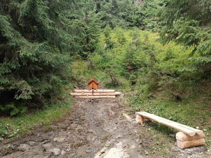 Для зручності мандрівників джерело впорядкували дерев’яною конструкцією та встановили лавку для короткого відпочинку.