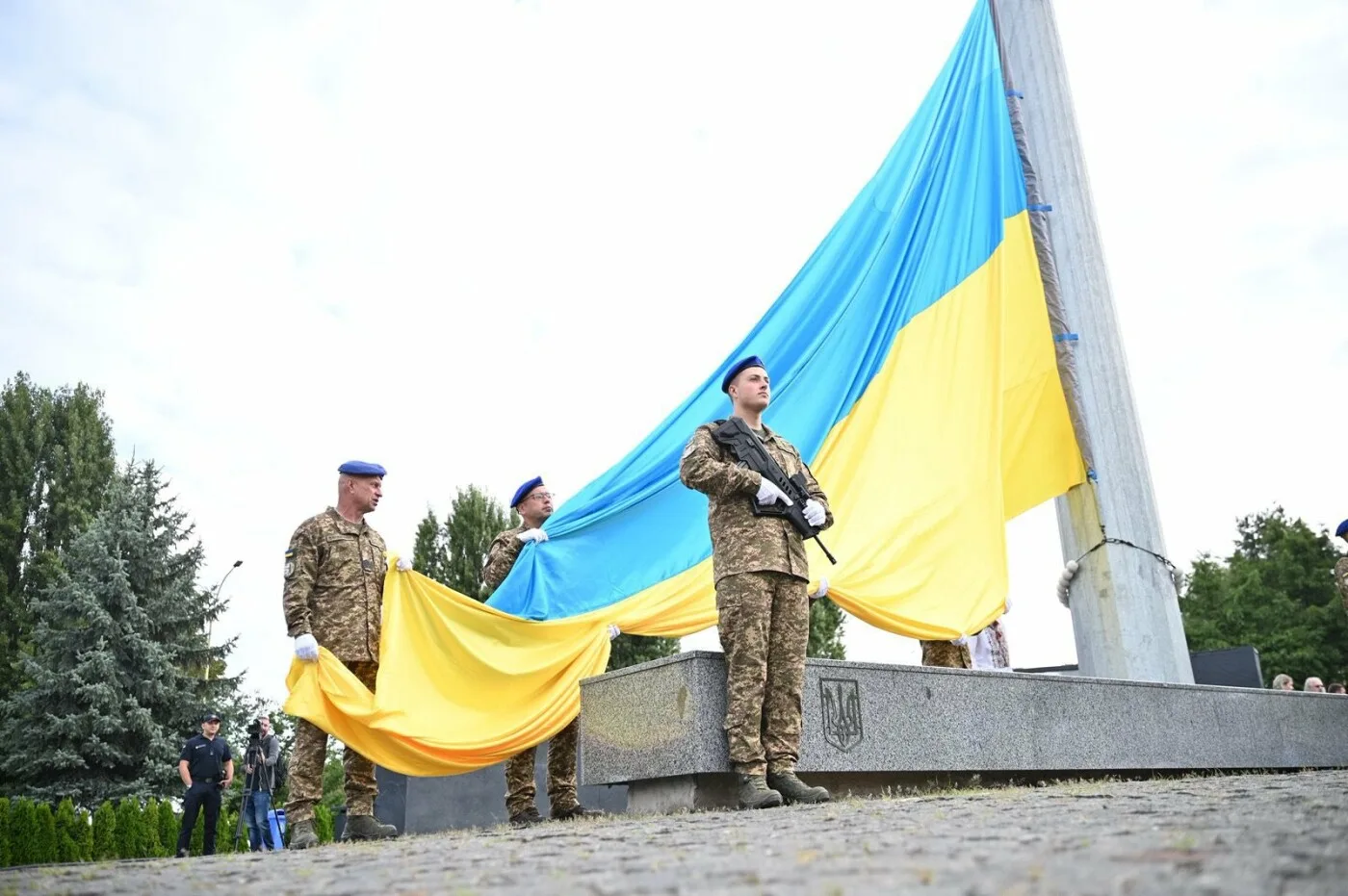 Після цього під звучання Гімну військовослужбовці підняли Державний прапор на найвищий флагшток Закарпаття.