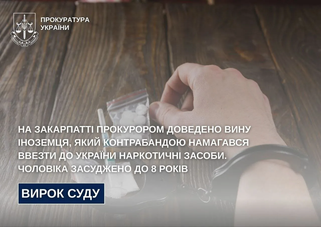 Закарпатською обласною прокуратурою доведено вину громадянина Угорщини, який контрабандою намагався ввезти до України марихуану, кокаїн та психотропи.