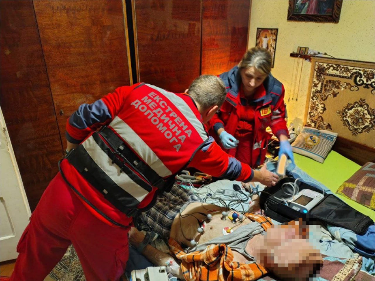 Виклик надійшов о 22:13 — 79-річний чоловік скаржився на сильний біль у грудях. Уже за три хвилини бригада швидкої була на місці. Діагностика підтвердила гострий інфаркт міокарда, ускладнений тяжкою блокадою серця. Тиск і пульс були критично низькими, існувала реальна загроза життю.