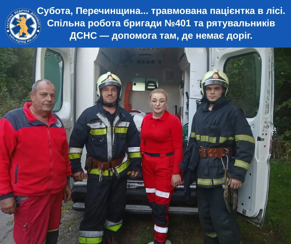О 17:35 на лінію «103» надійшов дзвінок: син повідомив, що його мама травмувала ногу у лісі між селами Дубричі та Пастілки та не може йти самостійно.