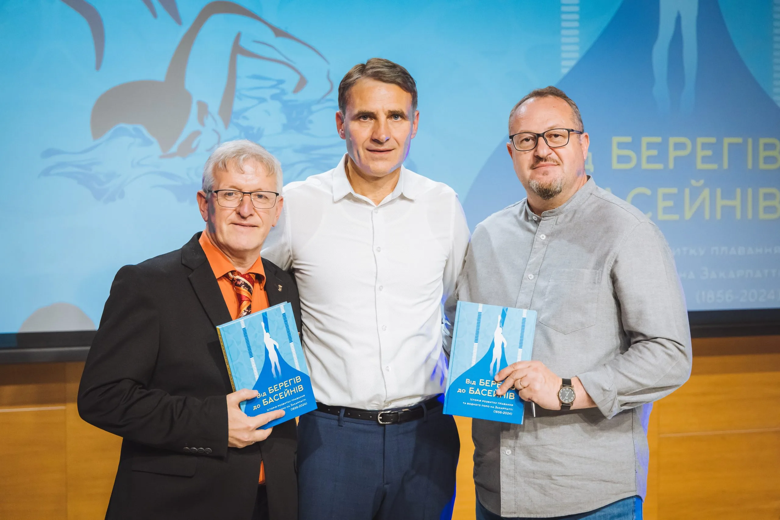 Авторами книги “Від берегів до басейнів” стали Роберт Левицький, голова Федерації плавання України в Закарпатській області, Володимир Тарасюк, спортивний журналіст, кандидат філологічних наук та Маріан Токар, доктор наук з державного управління, професор кафедри соціології та соціальної роботи УжНУ. У книзі автори розповідають про майже 170-річну історію розвитку плавання та водного поло на Закарпатті (1856–2024). Над виданням працювали 12 років, розповів Varosh Роберт Левицький.