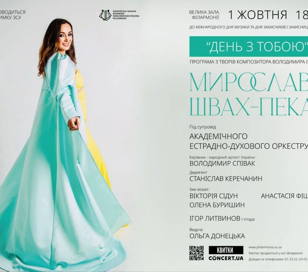 На сцені філармонії виступлять солістка Мирослава Швах-Пекар — лауреатка премії імені Дезидерія Задора — та Академічний естрадно-духовий оркестр. Прозвучать безсмертні композиції: «Червона рута», «Водограй», «День з тобою», «Балада про мальви», «Тільки раз цвіте любов» та інші. Аранжування творів здійснив заслужений діяч мистецтв України Володимир Конончук.