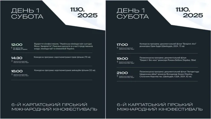 Сьогодні, 11 жовтня в Ужгороді відкривається VI Карпатський гірський міжнародний кінофестиваль (CMIFF), що присвячений тематиці гір, екології та туризму.