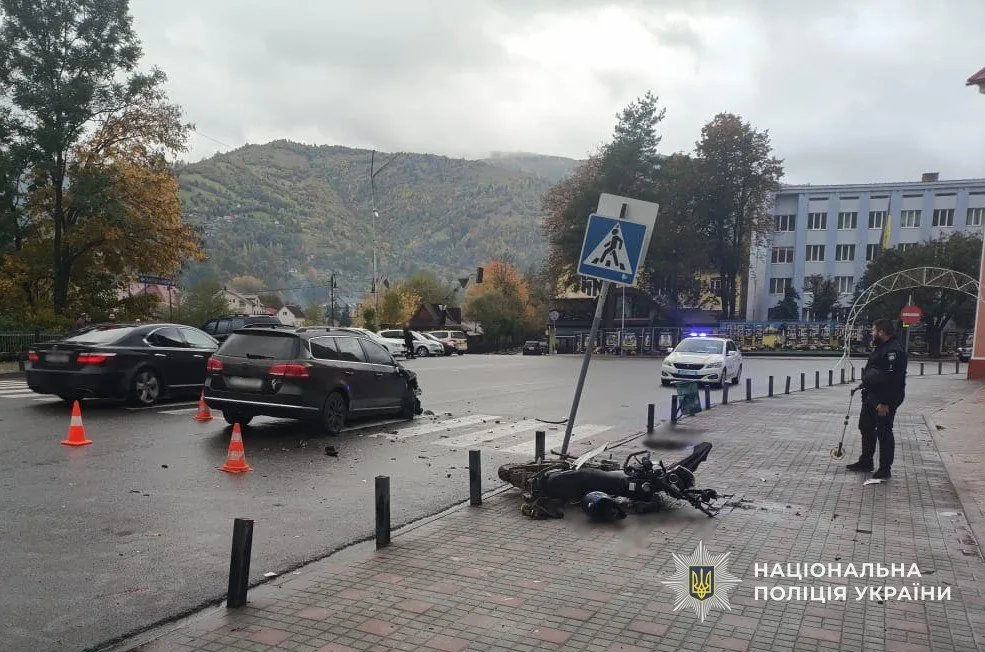 Наразі встановлено, що 21-річний житель міста Рахів разом із 15-річним пасажиром на незареєстрованому мотоциклі рухалися вулицею Миру. Чоловік не впорався з керуванням, виїхав на зустрічну смугу та допустив лобове зіткнення двоколісного з автомобілем «Volkswagen», яким керував 38-річний місцевий житель.