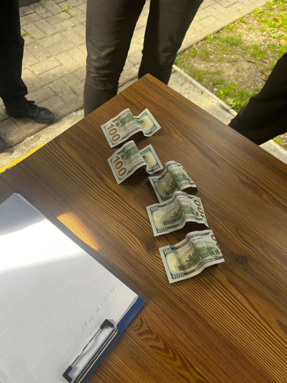 У ході проведення невідкладних слідчих дій міжвідомчою групою на місці події протоколом огляду було вилучено кошти фігуранта за оборудку, його особисті кошти – 450 доларів і 20 045 гривень та мобільний телефон.