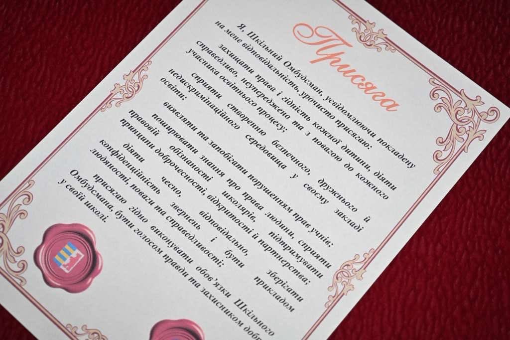 На початковому етапі в проєкті беруть участь 16 шкіл регіону. Сьогодні в атріумі ОВА перші шкільні омбудсмани склали урочисту присягу – стояти на захисті добра, справедливості й дитячої гідності.