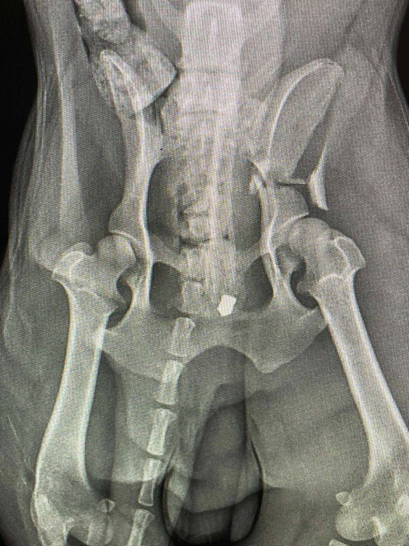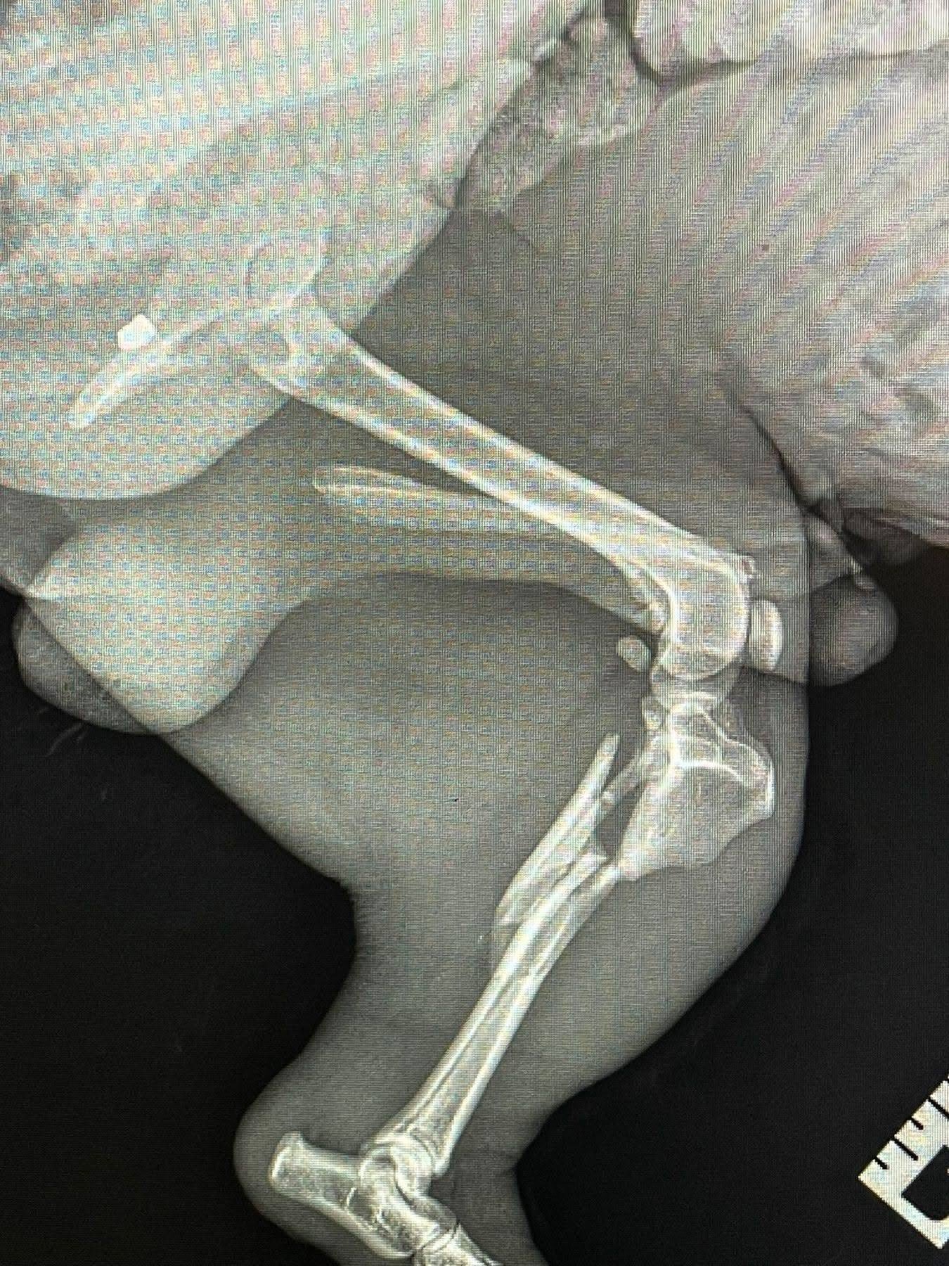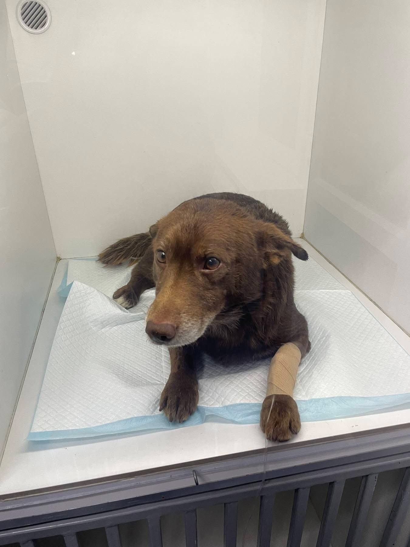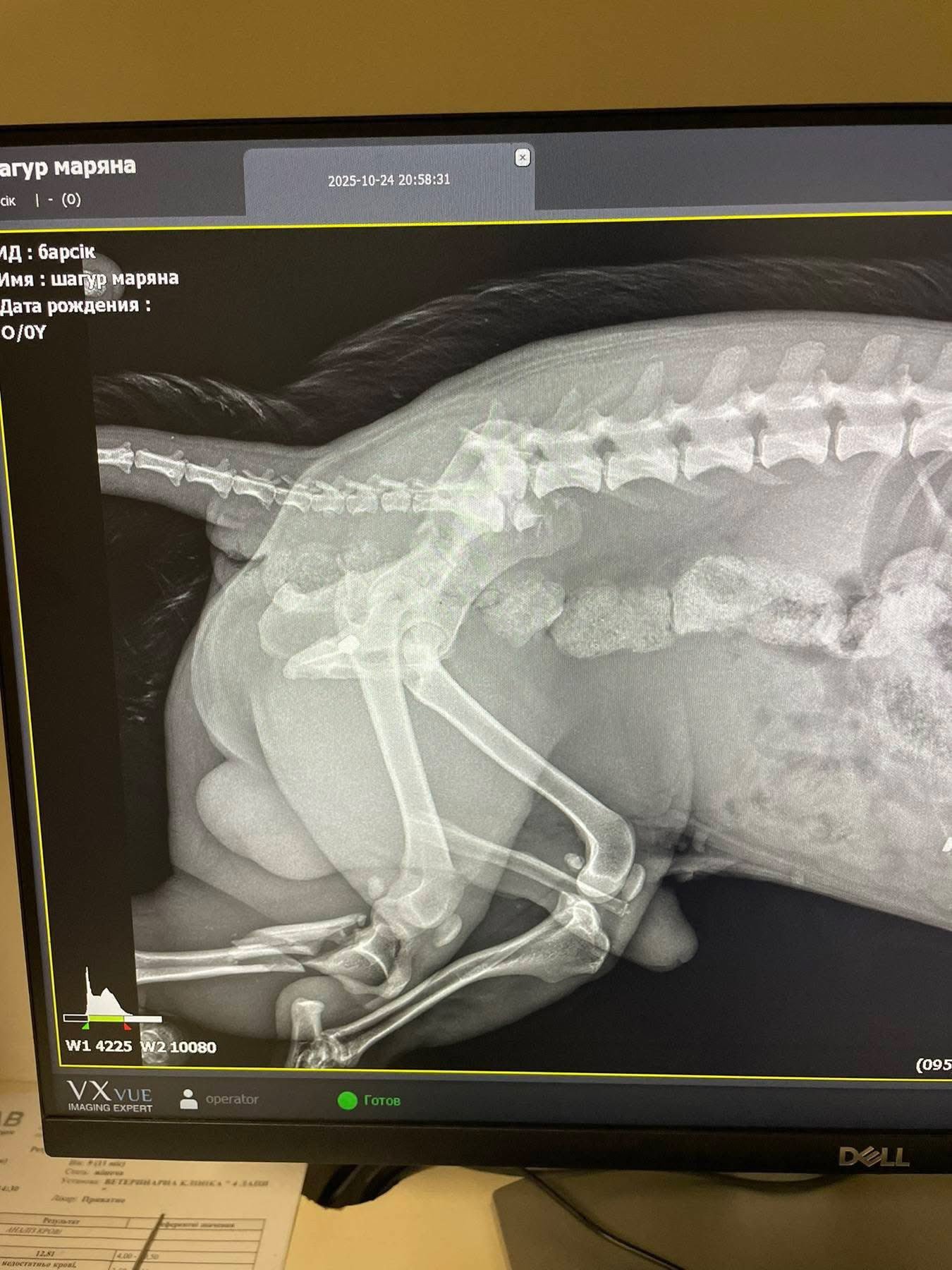Як зазначено в дописі, огляд та рентген показали наявність у тілі тварини двох куль. Окрім цього, у собаки роздроблені кістки на лапі.