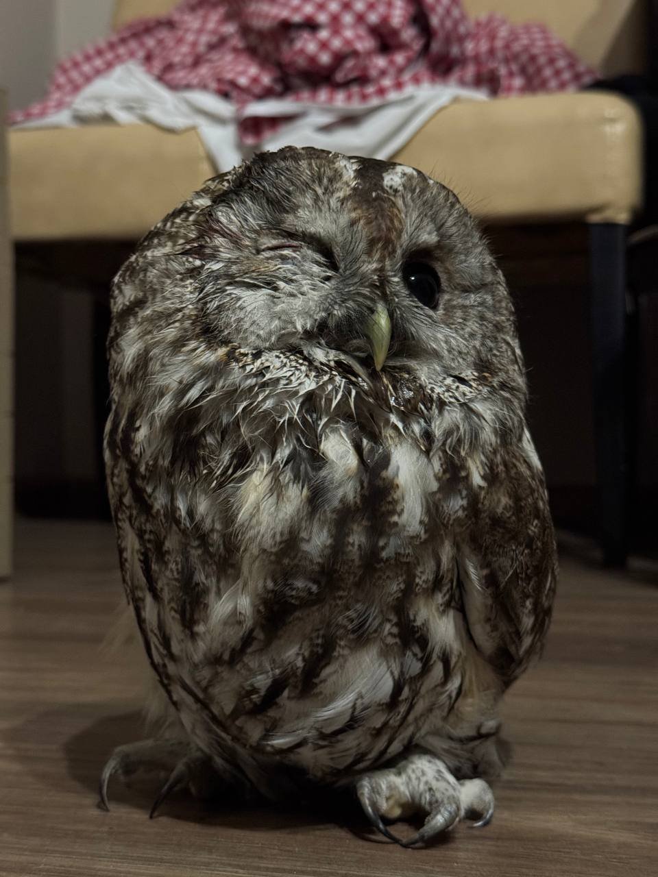 Коли вона розплющить забите око й остаточно відновиться, сову випустять. А поки що вона залишається у чоловіка, який піклується про неї.