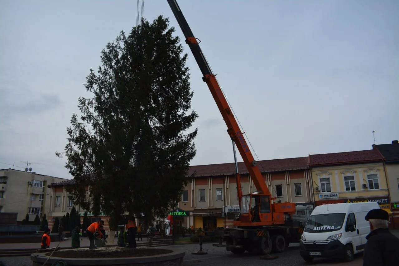 Ялинку громаді передали безкоштовно — її подарувала одна з місцевих фірм. Висота дерева становить 12,5 метра.