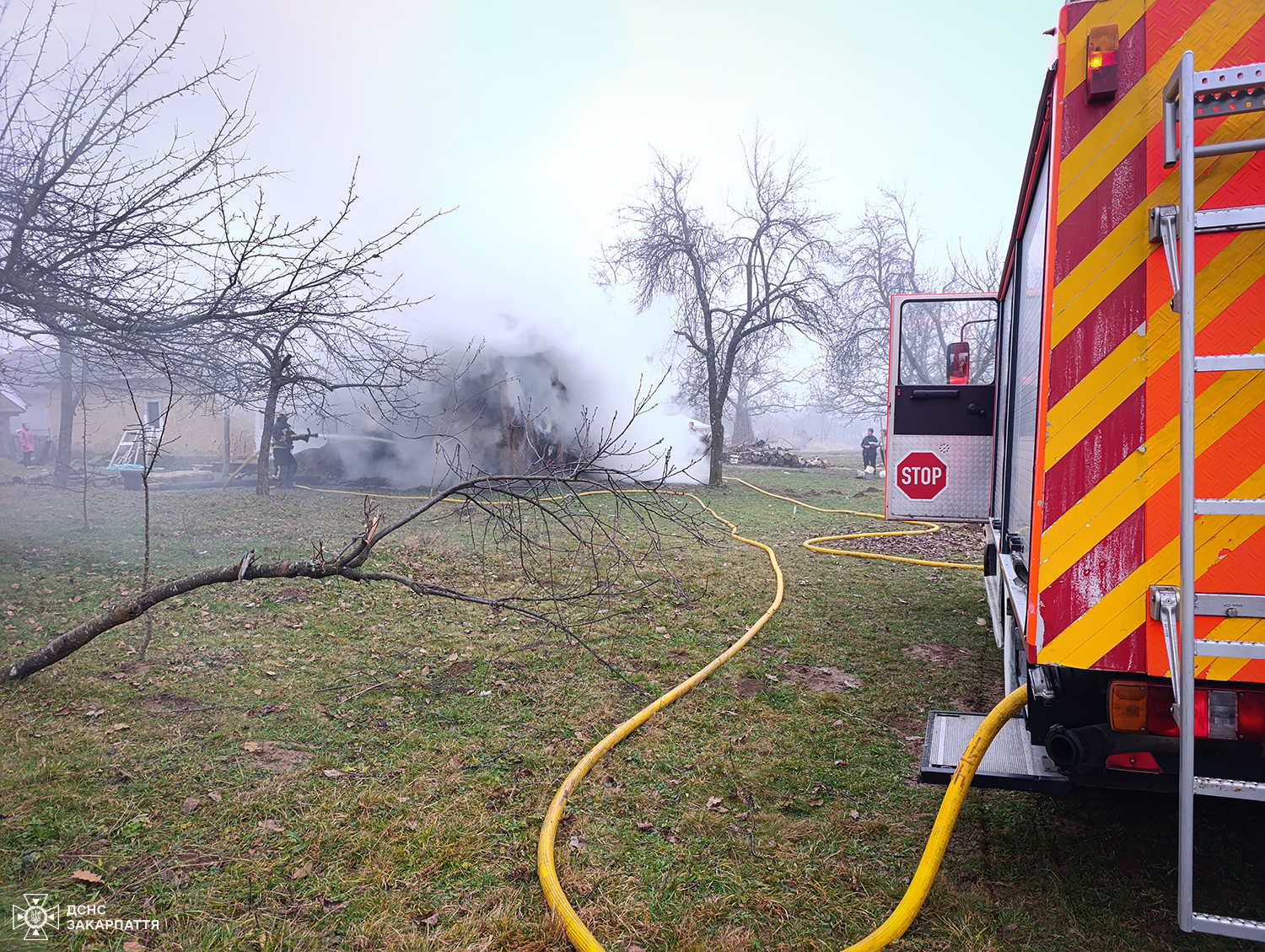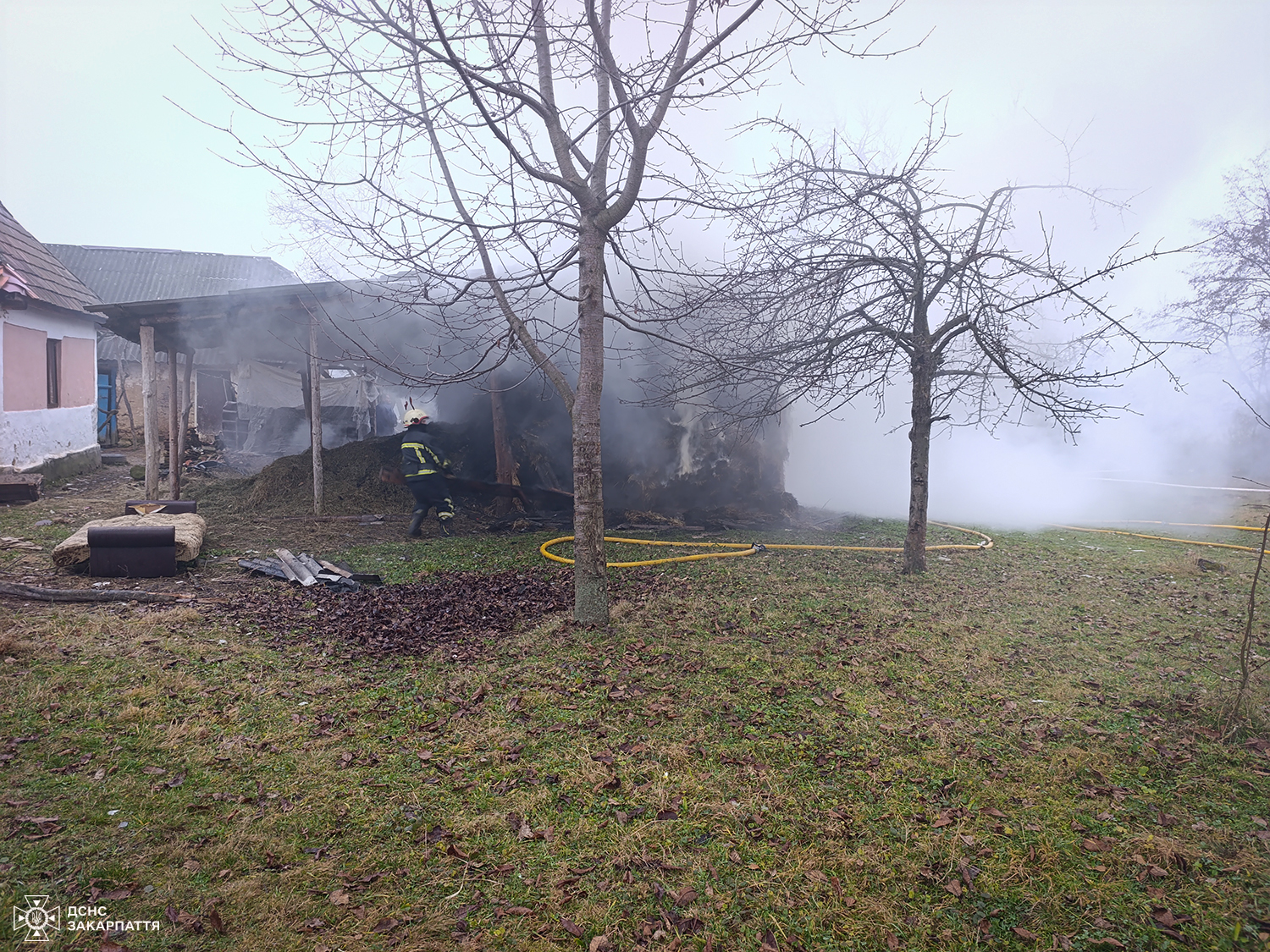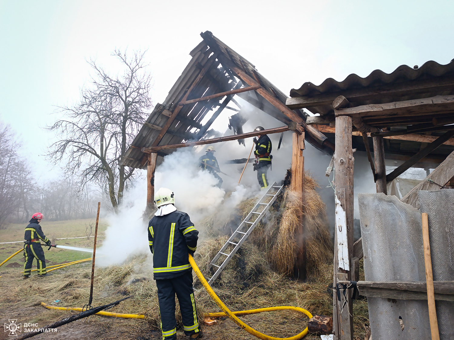 У селі Ільниця на Хустщині рятувальникам вдалося запобігти поширенню полум’я від охопленого вогнем навісу з сіном до житлового будинку багатодітної родини.