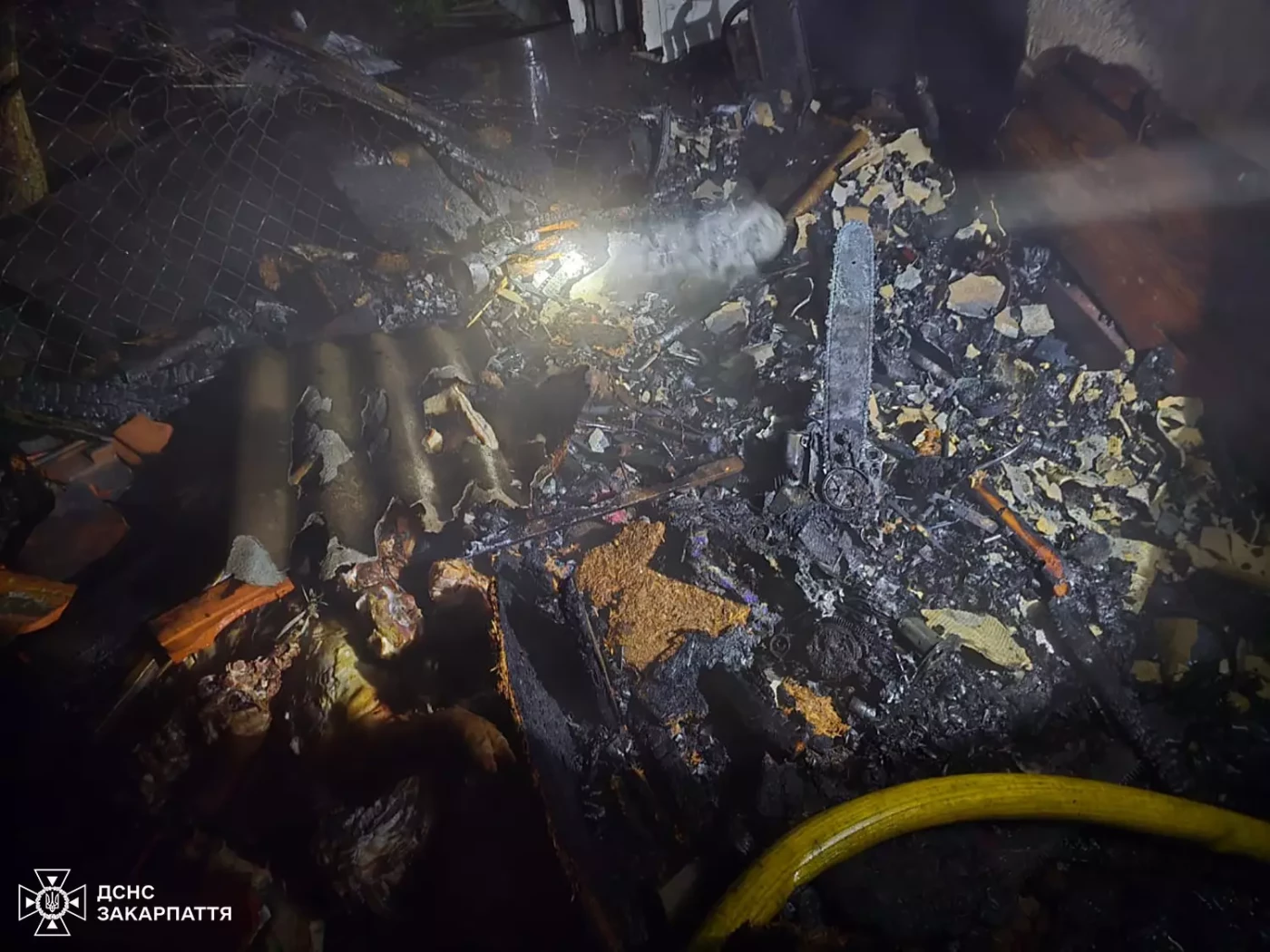 Вогонь знищив дерев’яну коптильню та пошкодив два газові балони, ручну бензопилу й бетонозмішувач.