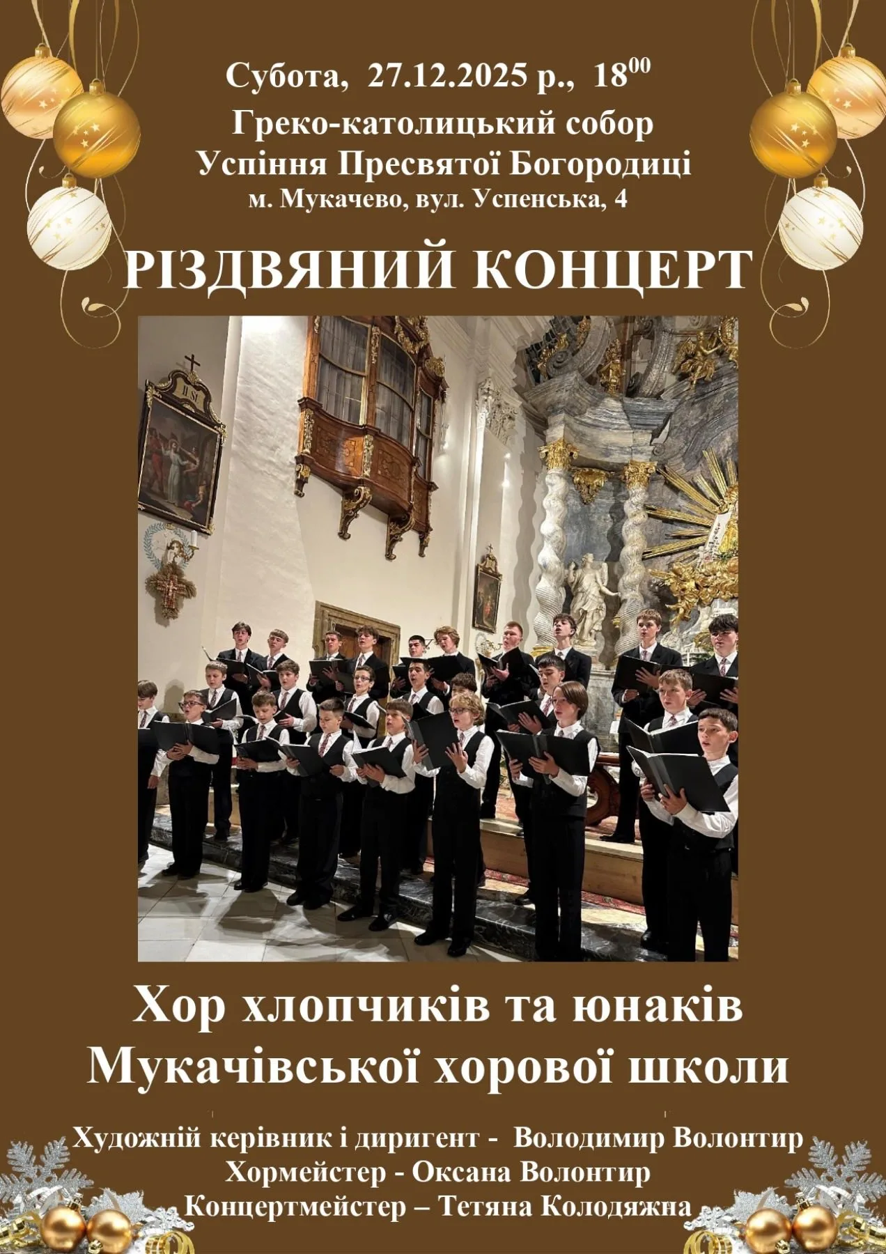 • 27 грудня о 18:00 — Греко-католицький собор Успіння Пресвятої Богородиці, вул. Успенська, 4, Мукачево