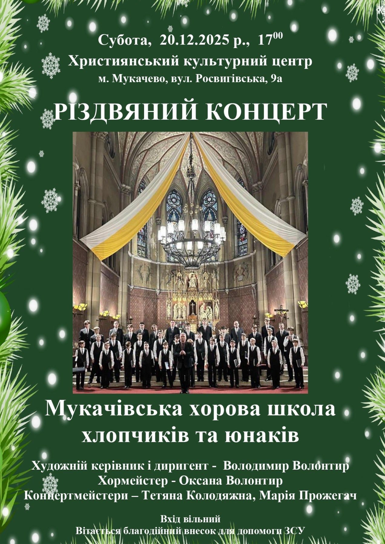 Мукачівська хорова школа хлопчиків та юнаків повідомляє про проведення святкових різдвяних концертів.
