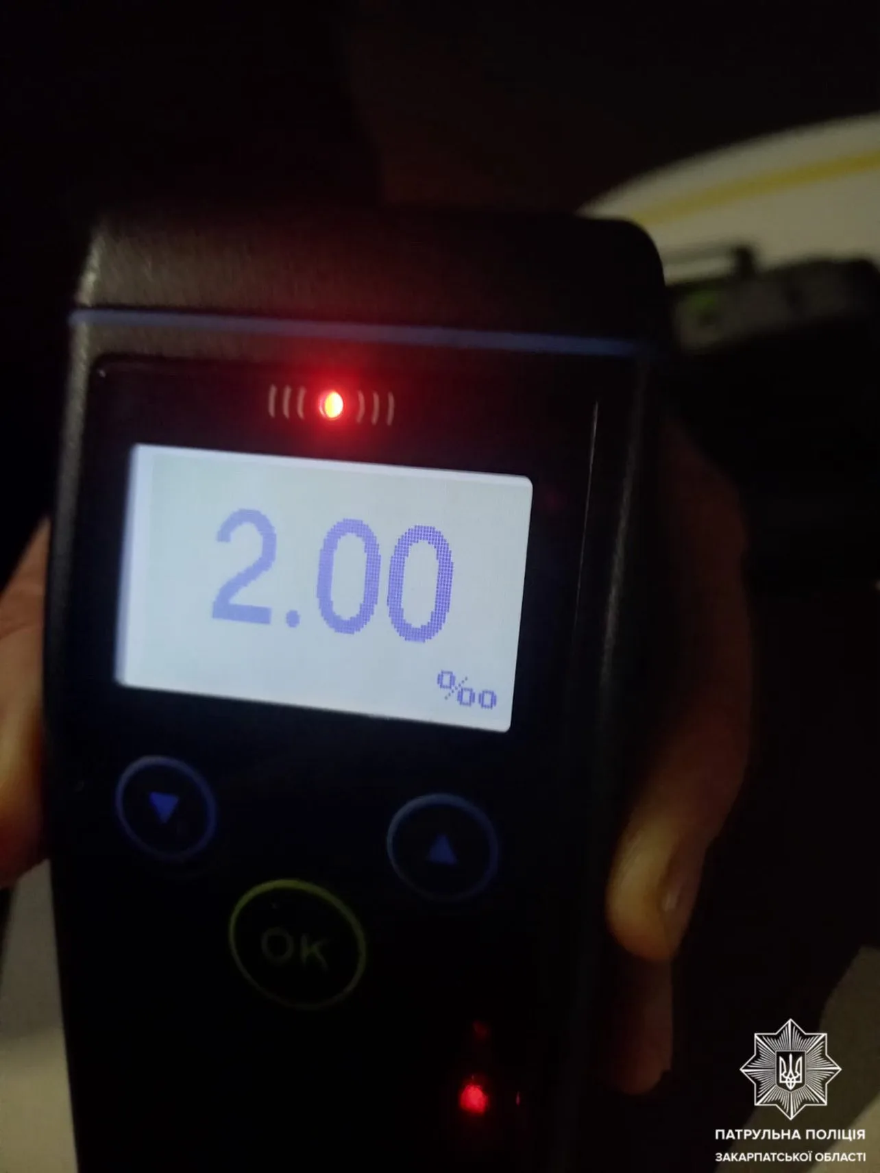 Результат перевірки показав 2,00 проміле алкоголю в крові. За цим фактом патрульні склали адміністративний протокол за частиною 1 статті 130 Кодексу України про адміністративні правопорушення. Подальше рішення щодо порушника ухвалюватиме суд.