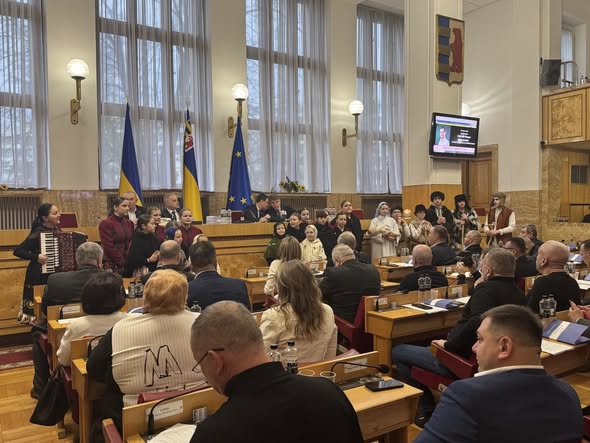 На початку пленарного засідання Закарпатської обласної ради до сесійної зали урочисто внесли Віфлеємський вогонь миру. Почесну місію виконали представники скаутських організацій — пластуни.